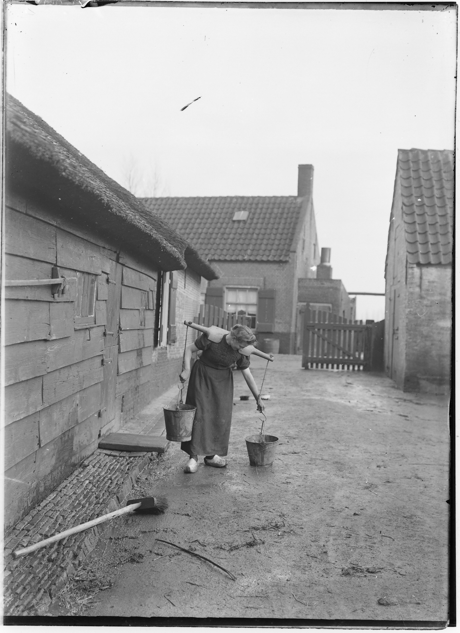 Een boerin aan de Vissersdijk, een duidelijk geval van 2 emmertjes water halen
