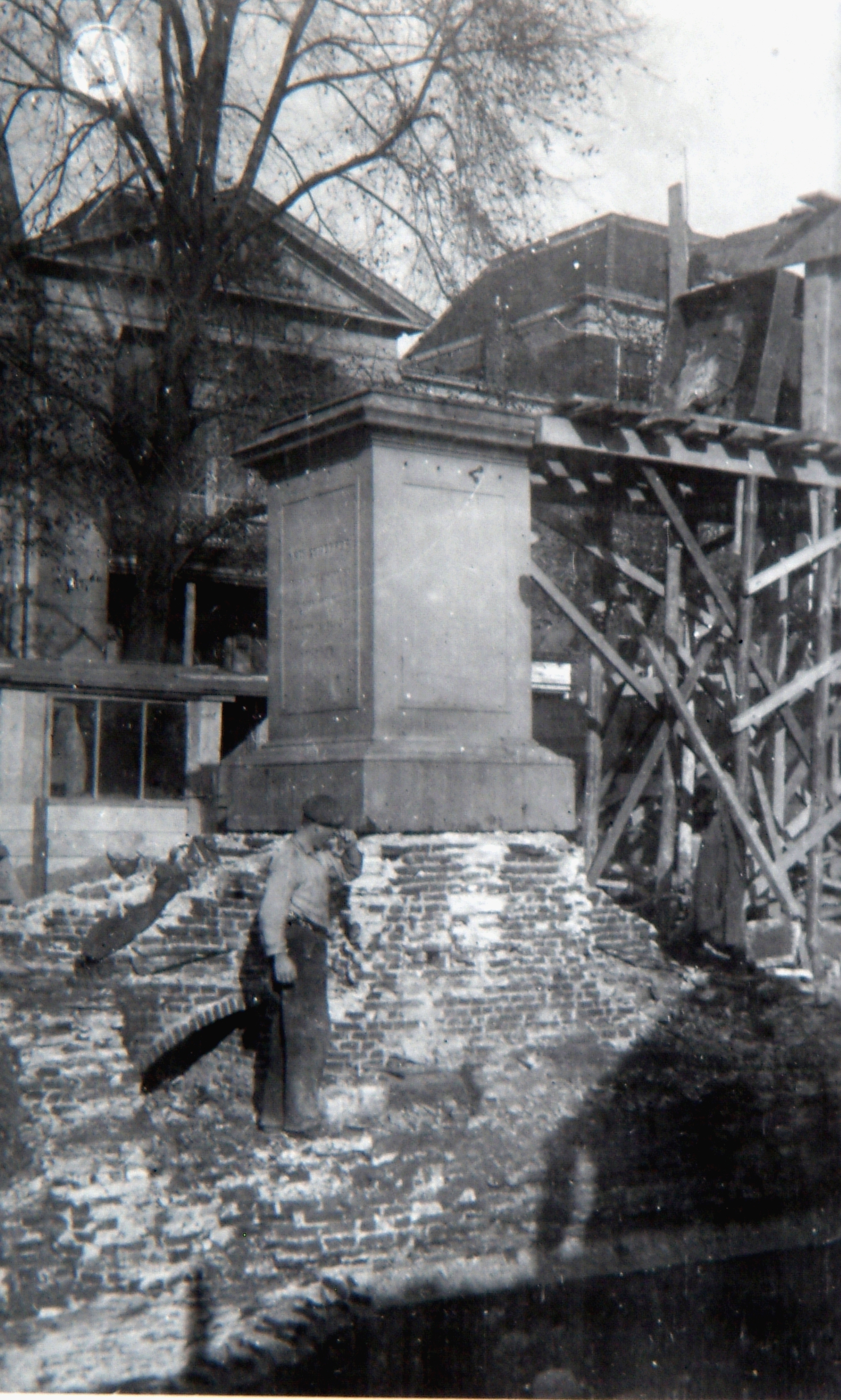 Tijdens vernieuwing van het Scheffersplein werd ook de sokkel van het standbeeld van …