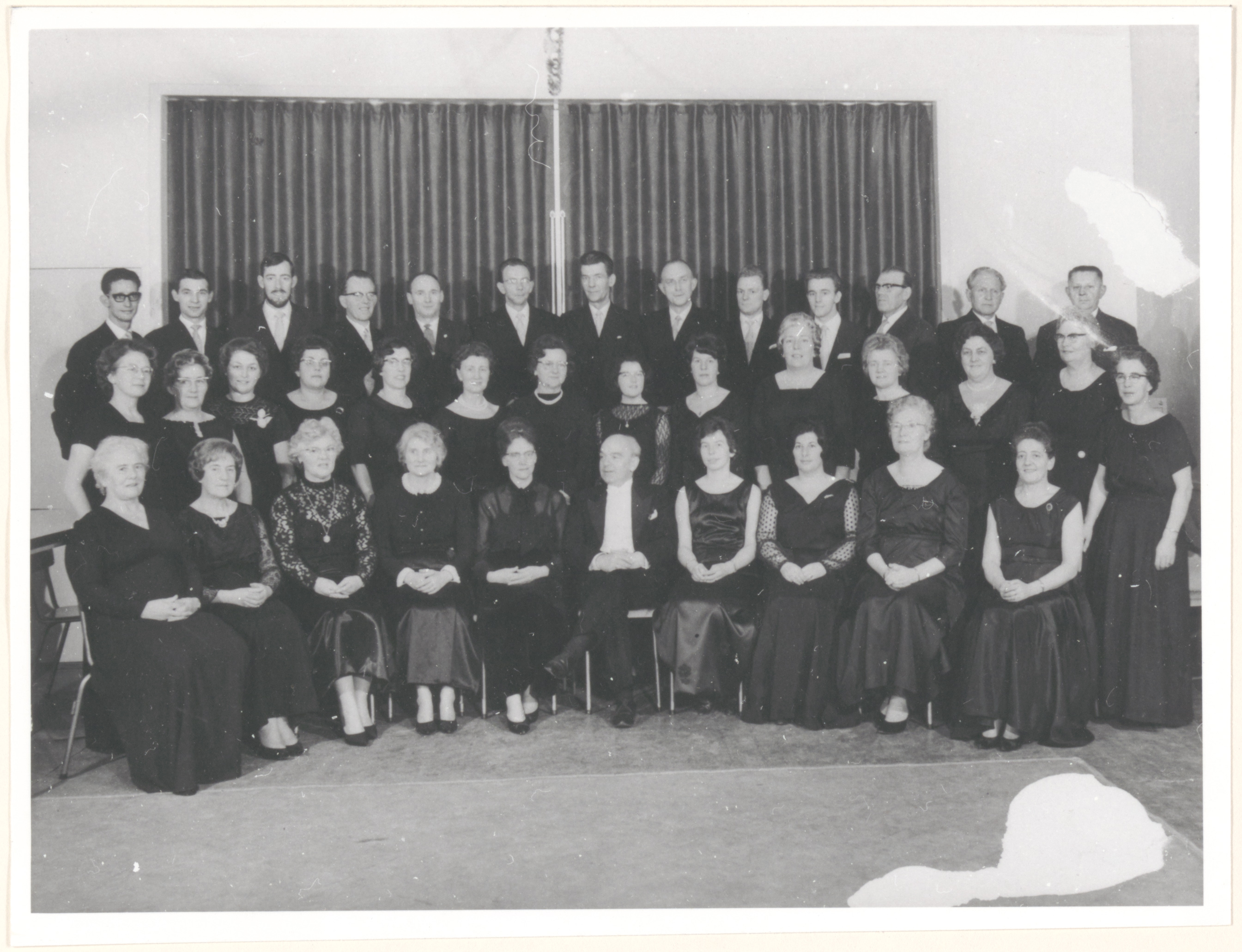- Groepsportret op een toneel van het zangkoor Orpheus.