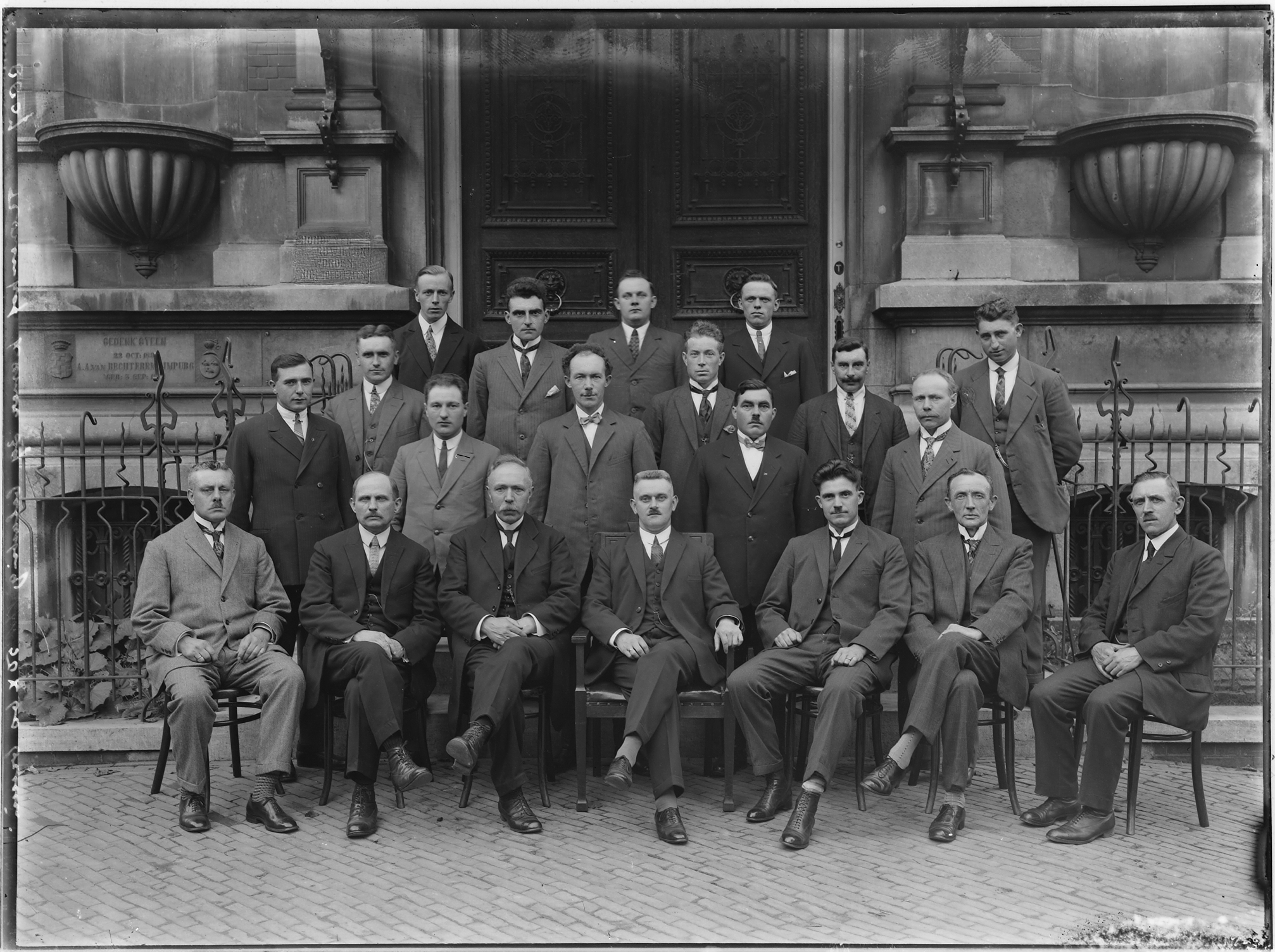- Medewerkers belastingdienst voor de ingang van hun kantoor in villa Rozenhof op de Rozenhof