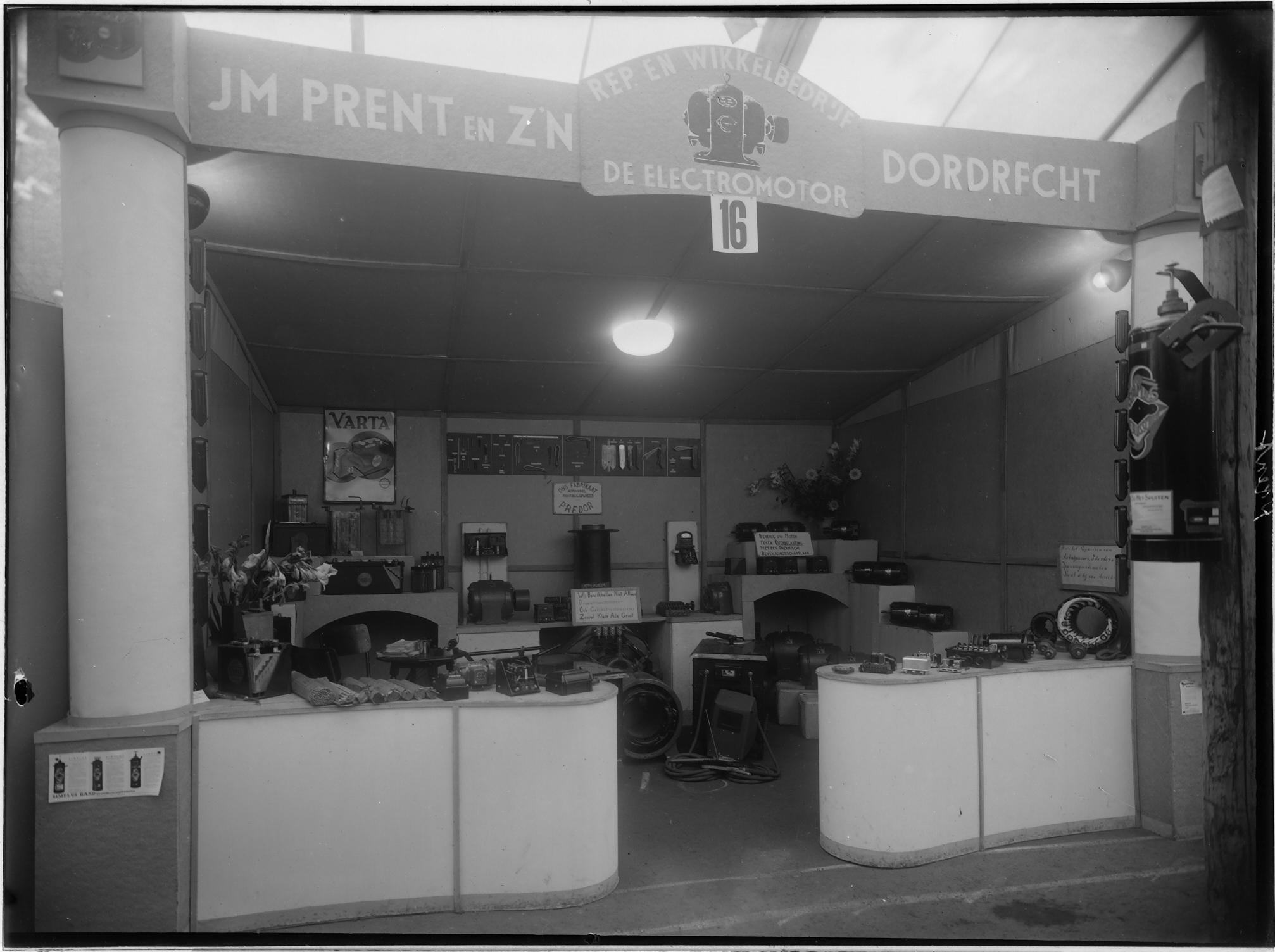 Stand van reparatie en wikkelbedrijf De Electromotor van J.M. Prent op de Dawet