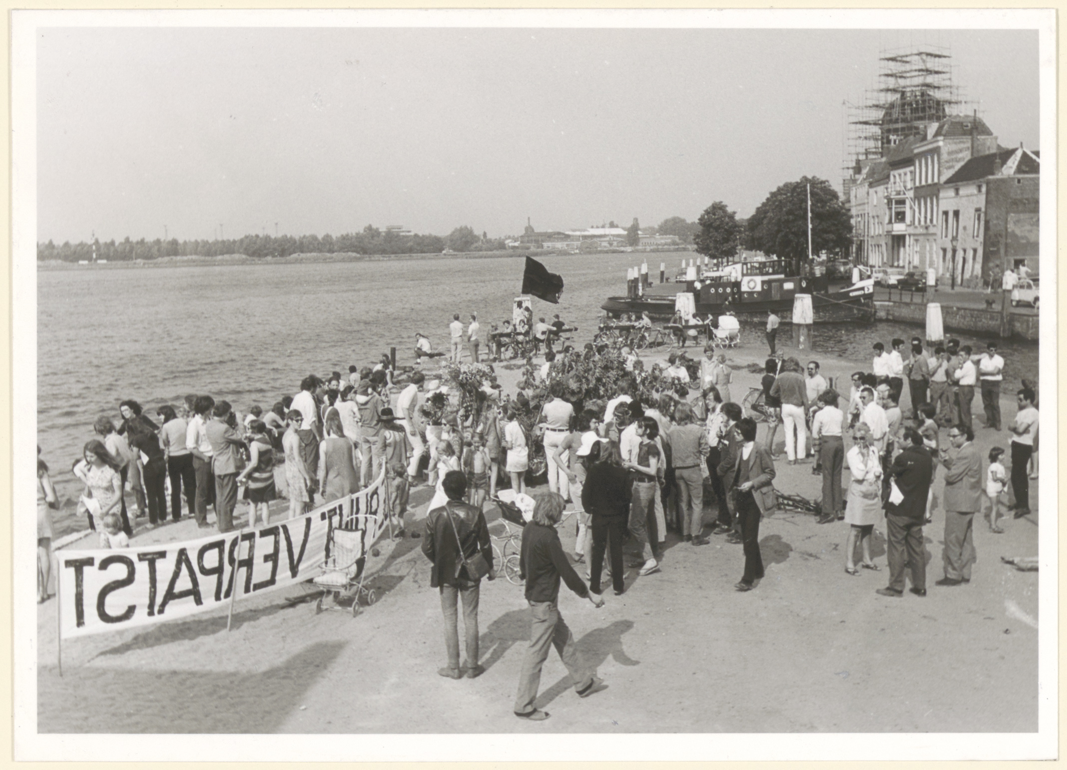- Demonstratie op het Damiatebolwerk tegen de bebouwing ervan; met zwarte vlag, bloemen en spandoek "de punt verpatst". Rechts met pijp C. (Kees) Buddingh'.