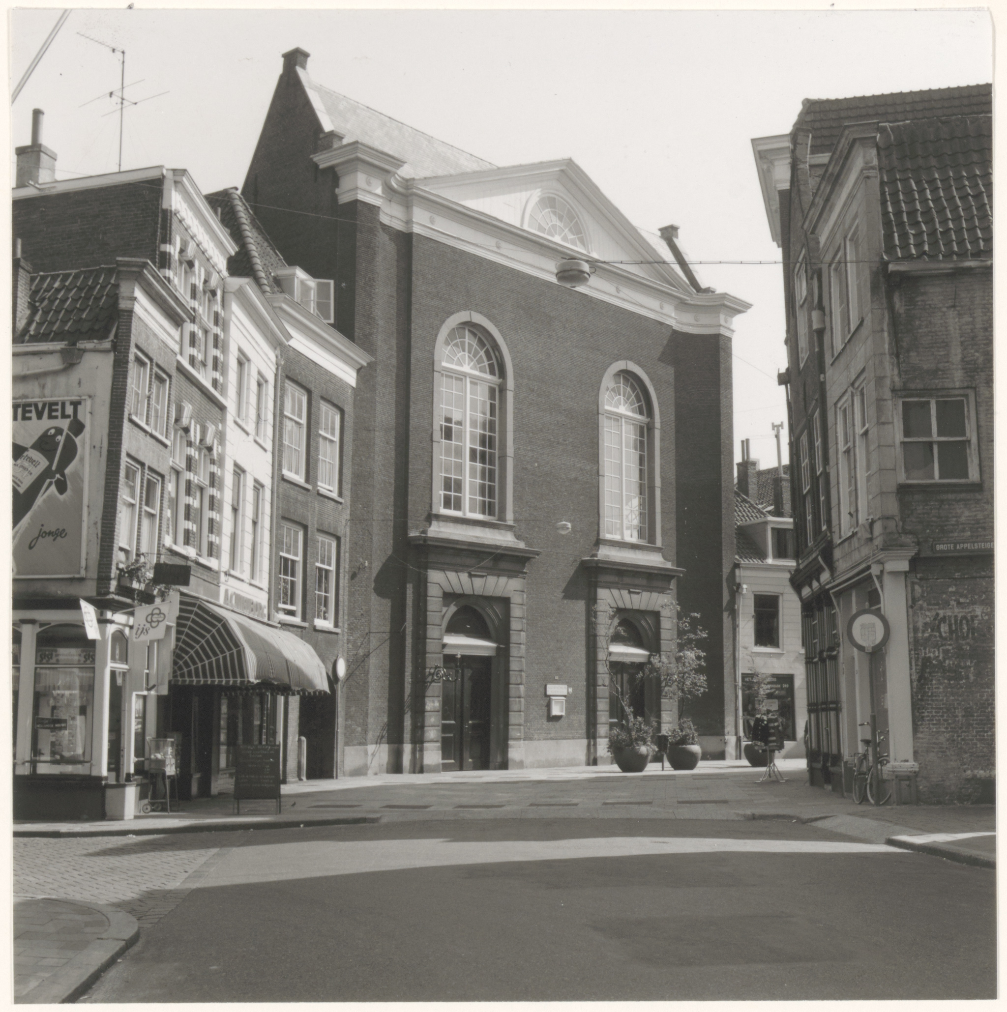 - De Voorstraat, gezien vanaf de kruising met het Steegoversloot (links) en de Grote Appelsteiger (rechts) naar de Augustijnenkerk.