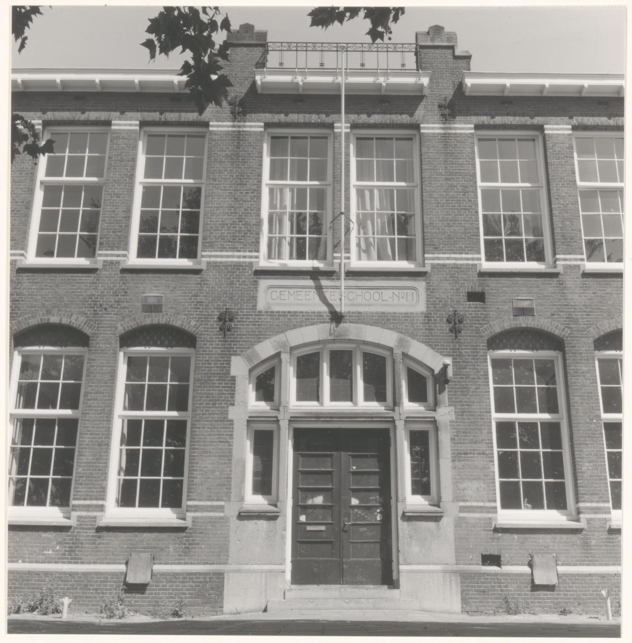 De ingang van de gemeenteschool voor lager onderwijs nr. 11 aan de noordzijde van het …
