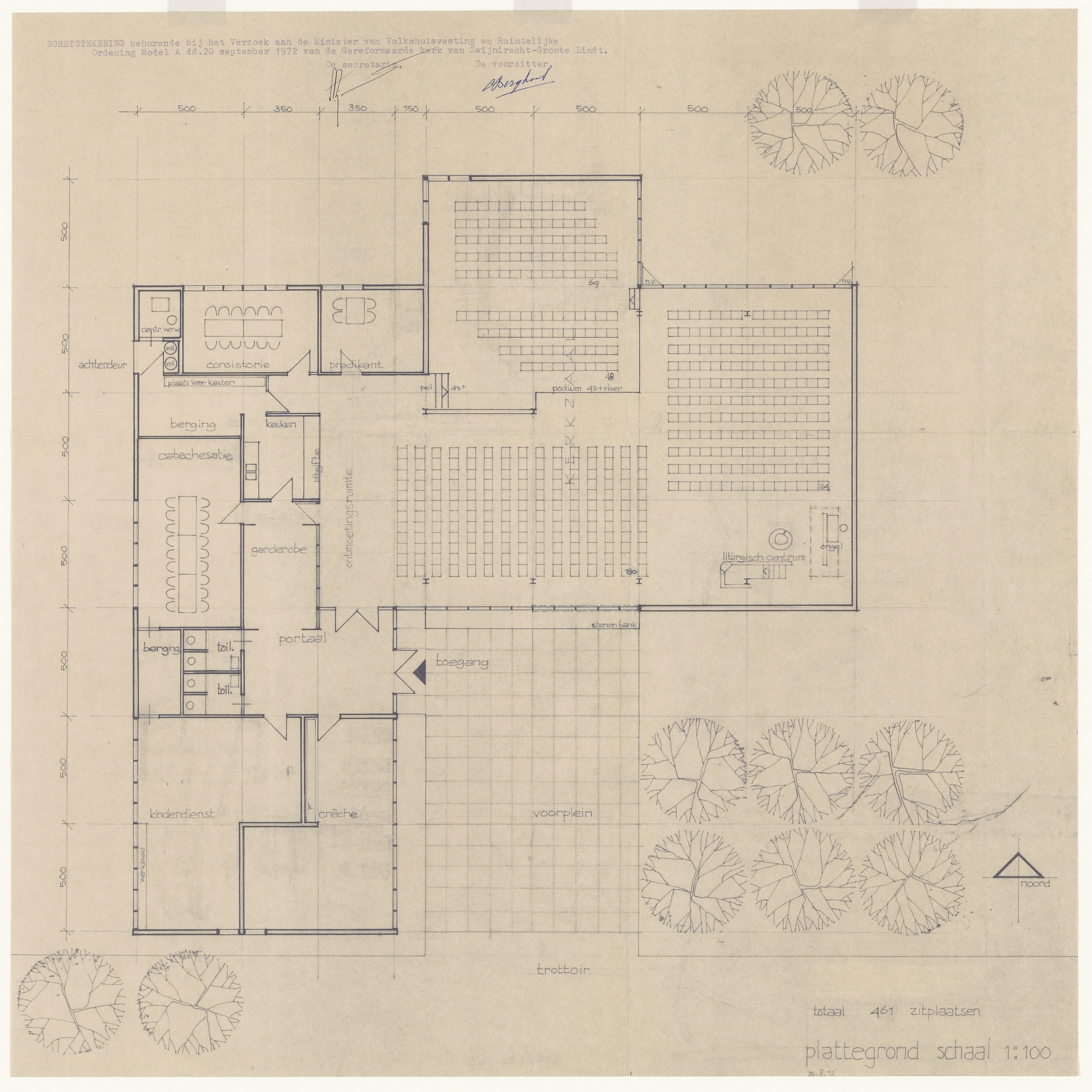 - Plattegrond van de Gereformeerde Kerk van Zwijndrecht/Groote Lindt, de Burchtkerk, aan de Laan van Nederhoven.