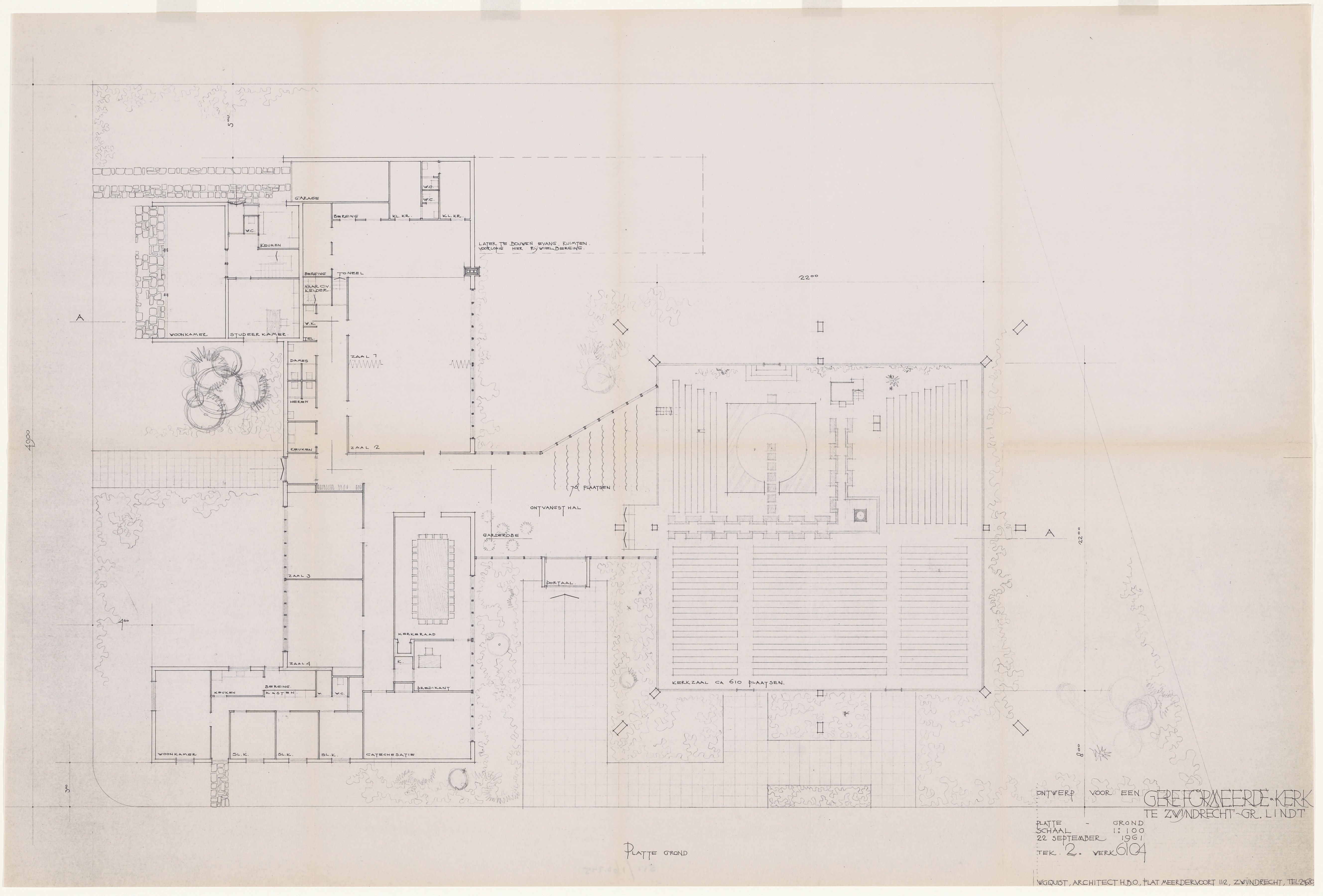 Plattegrond van de gereformeerde Ichthuskerk aan de Frits Vogelstraat te Zwijndrecht.