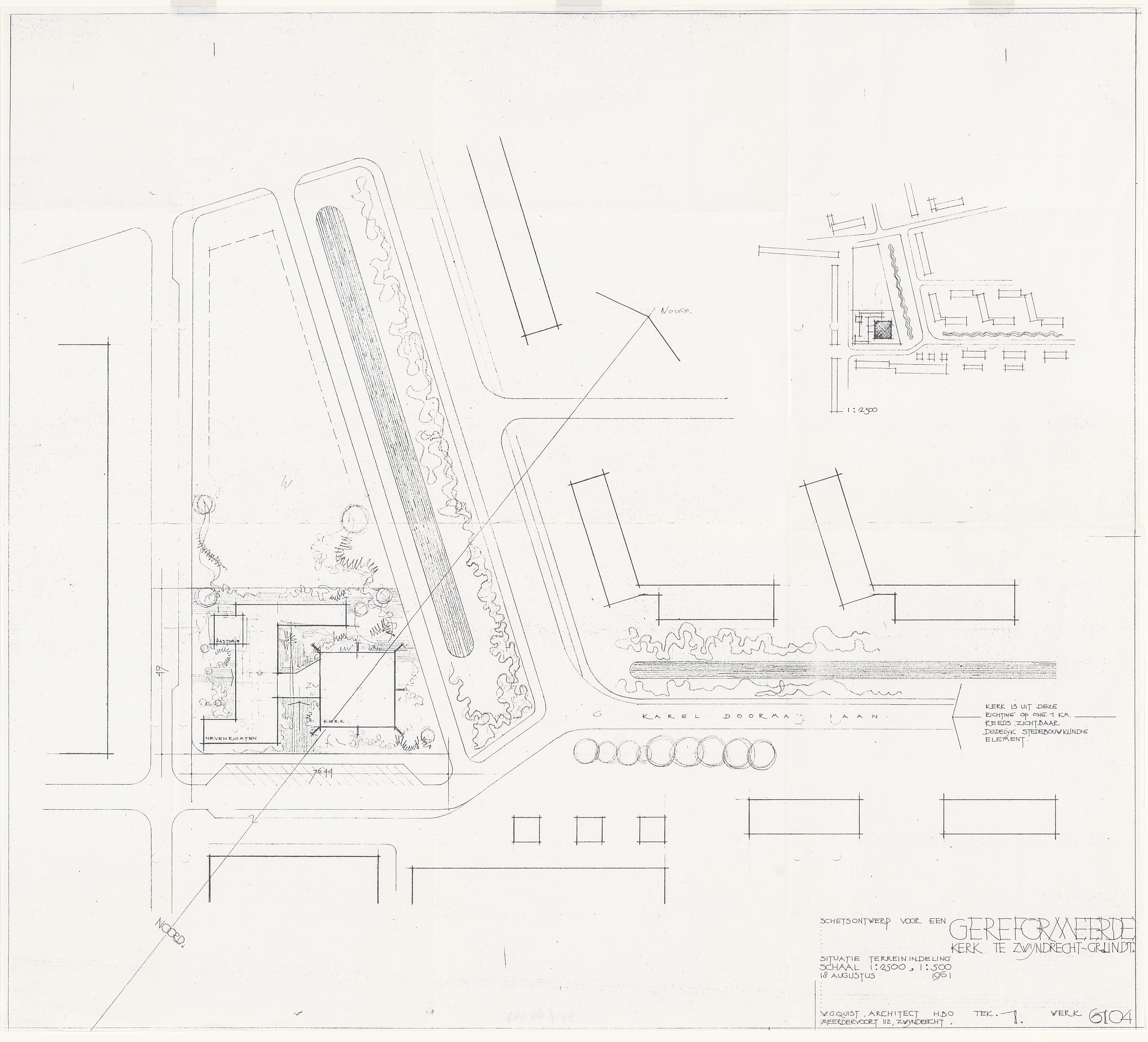 - Situatieschets voor de gereformeerde Ichthuskerk aan de Frits Vogelstraat te Zwijndrecht.