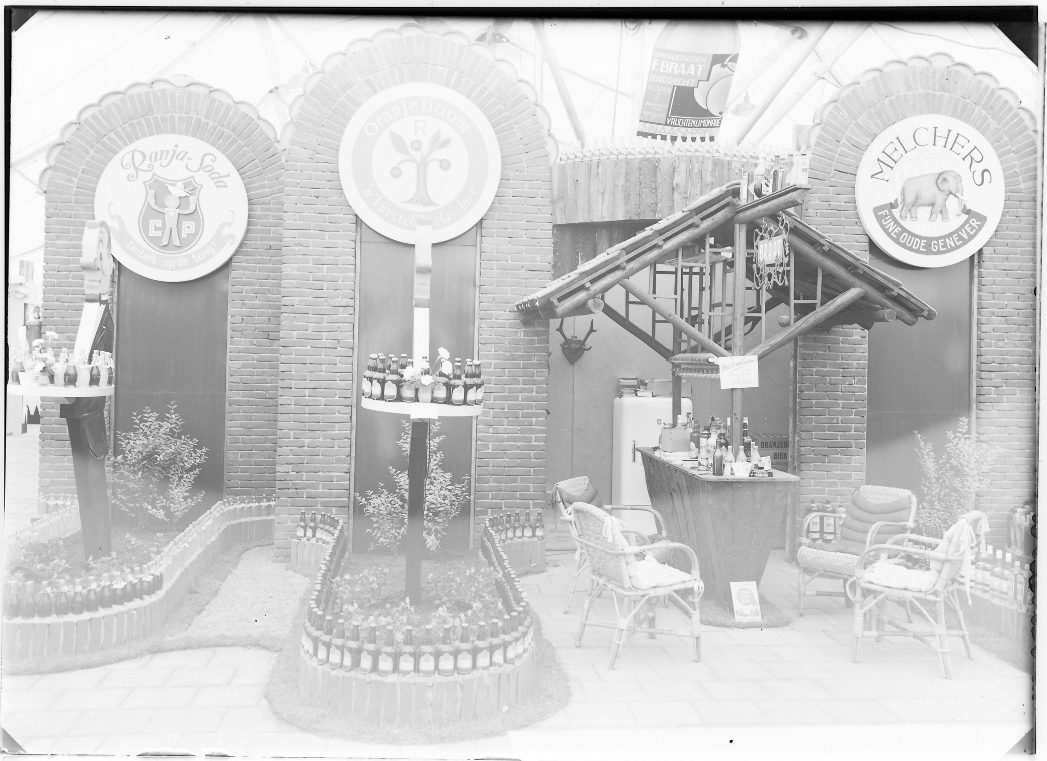 Stand van bierbottelaar F. Braat aan de Wolwevershaven 35 op de DAWET in Kunstmin