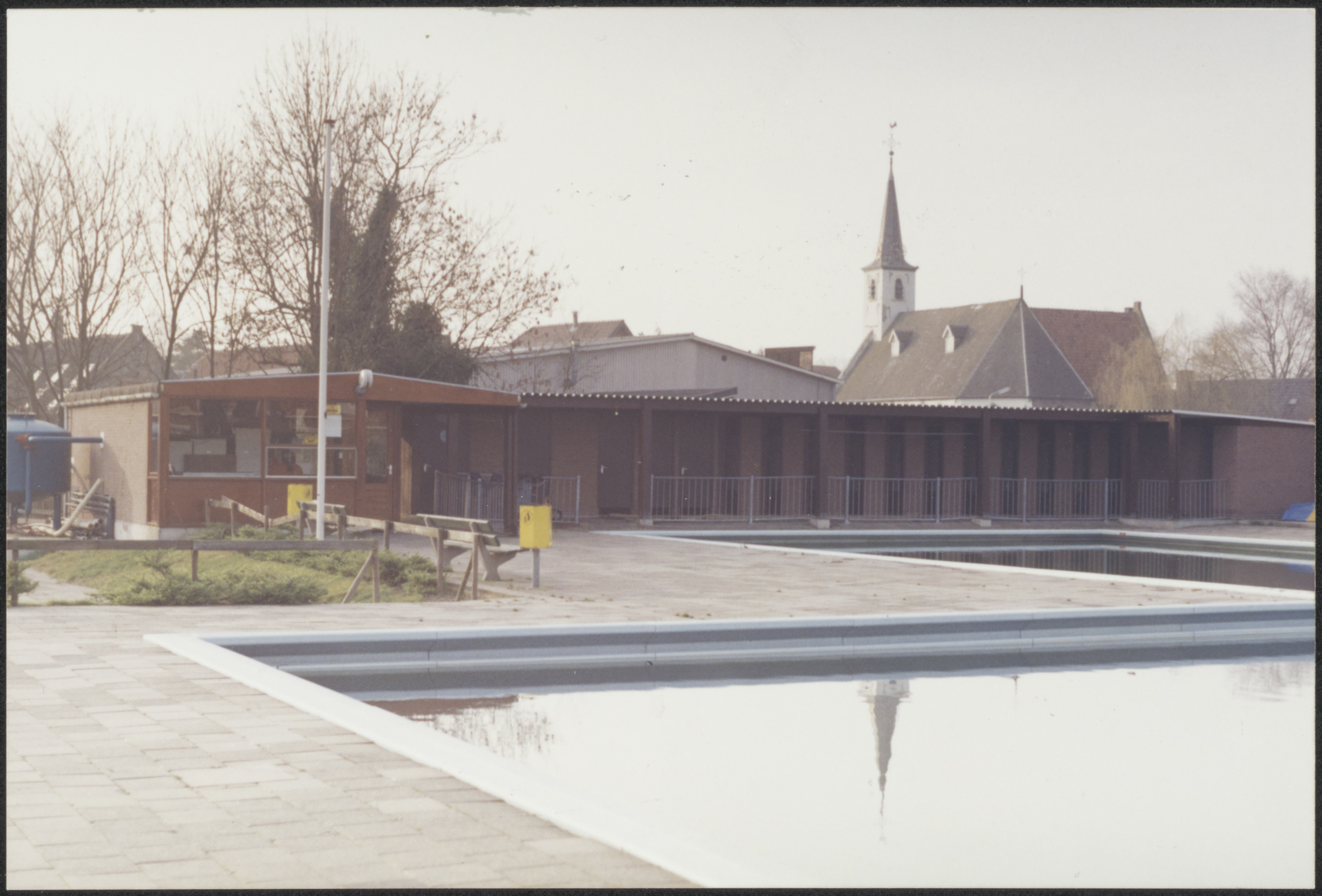 Zwembad Het Centrum en de Hervormde Kerk aan de Kerkstraat in Klaaswaal.