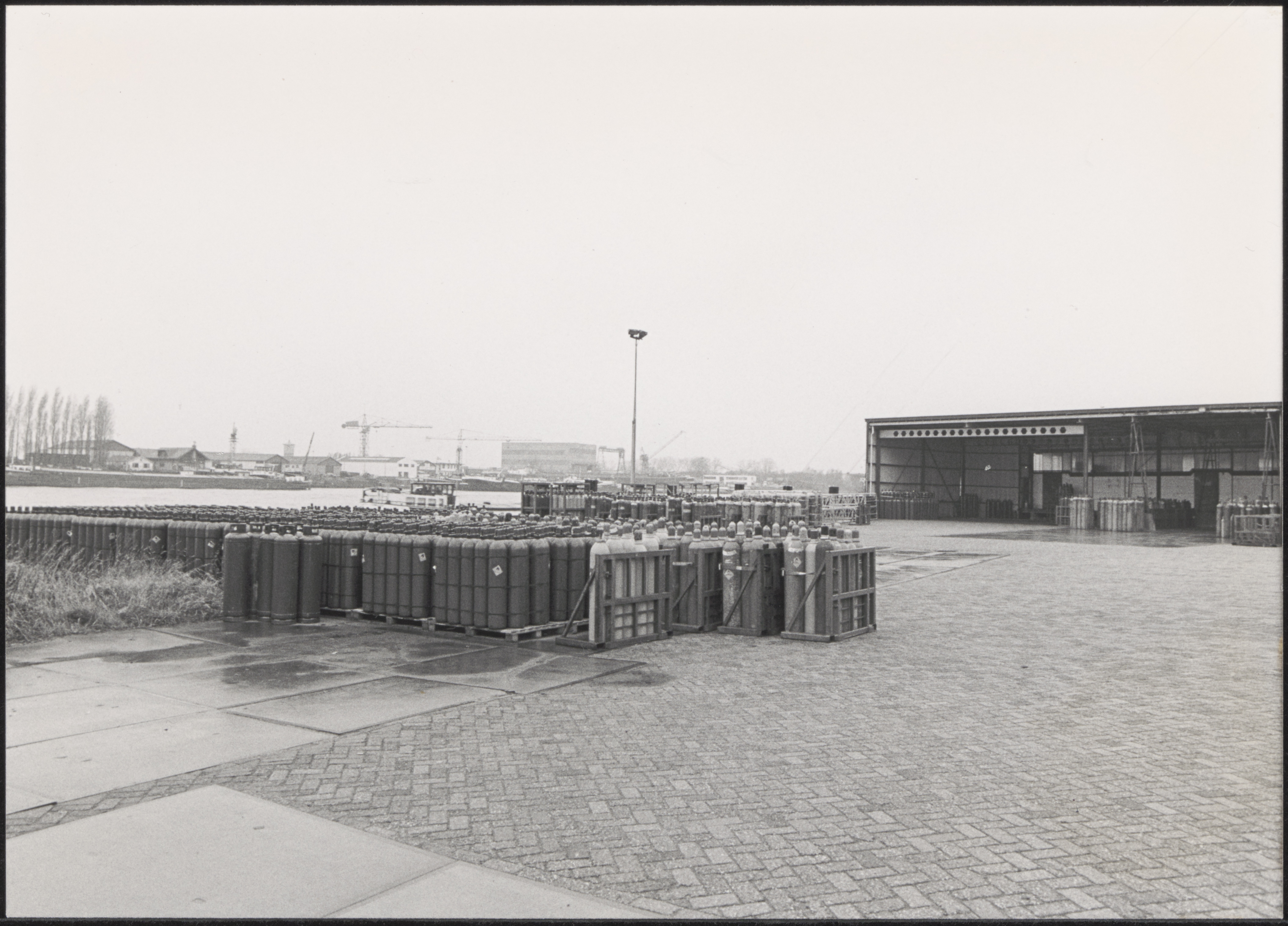 Opslagterrein van gasfabriek De Graafstroom aan de Rapenburg in Alblasserdam.