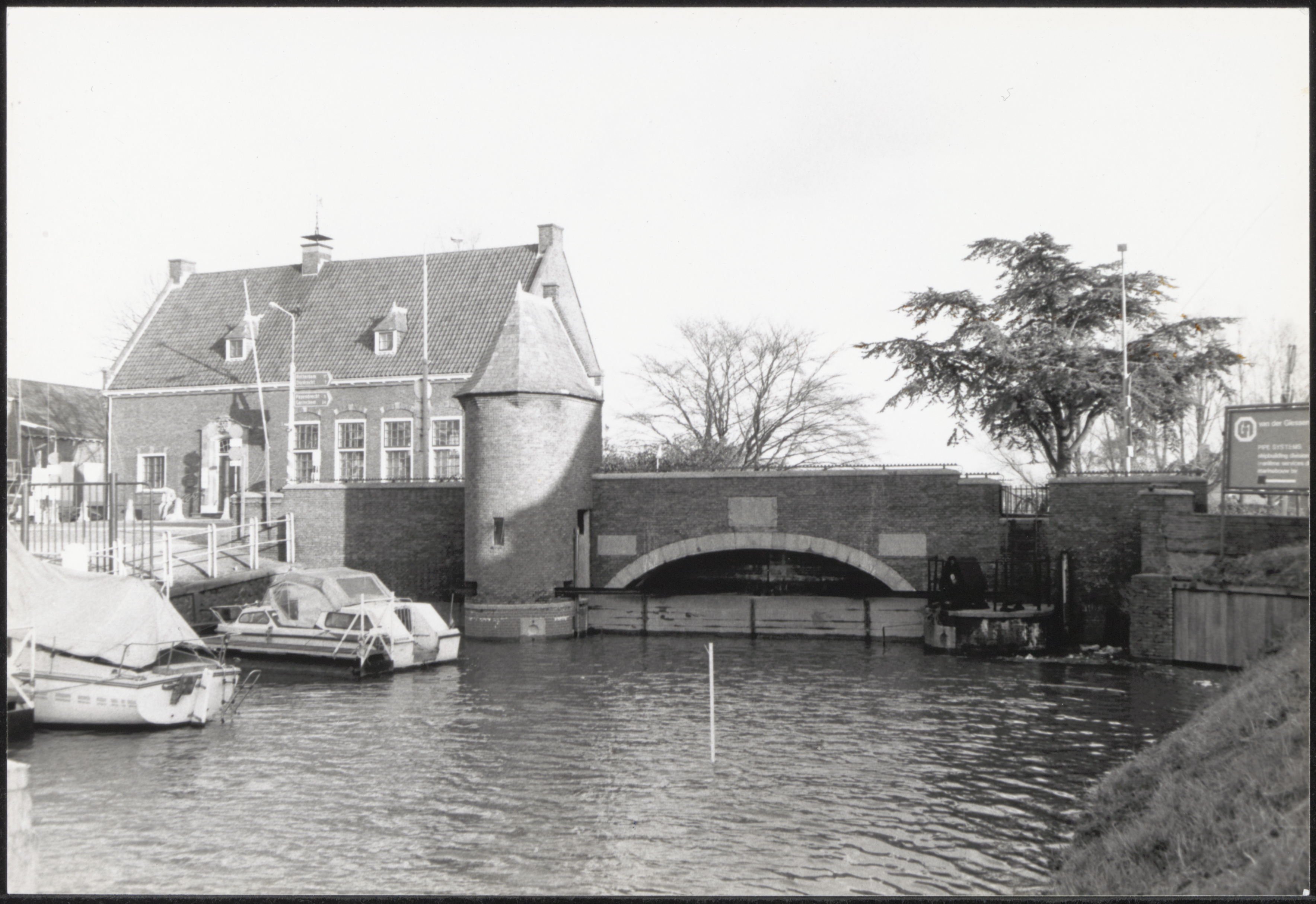 Het Waardhuis van de Nederwaad en sluis op de Dam in Alblasserdam, gezien vanaf het …
