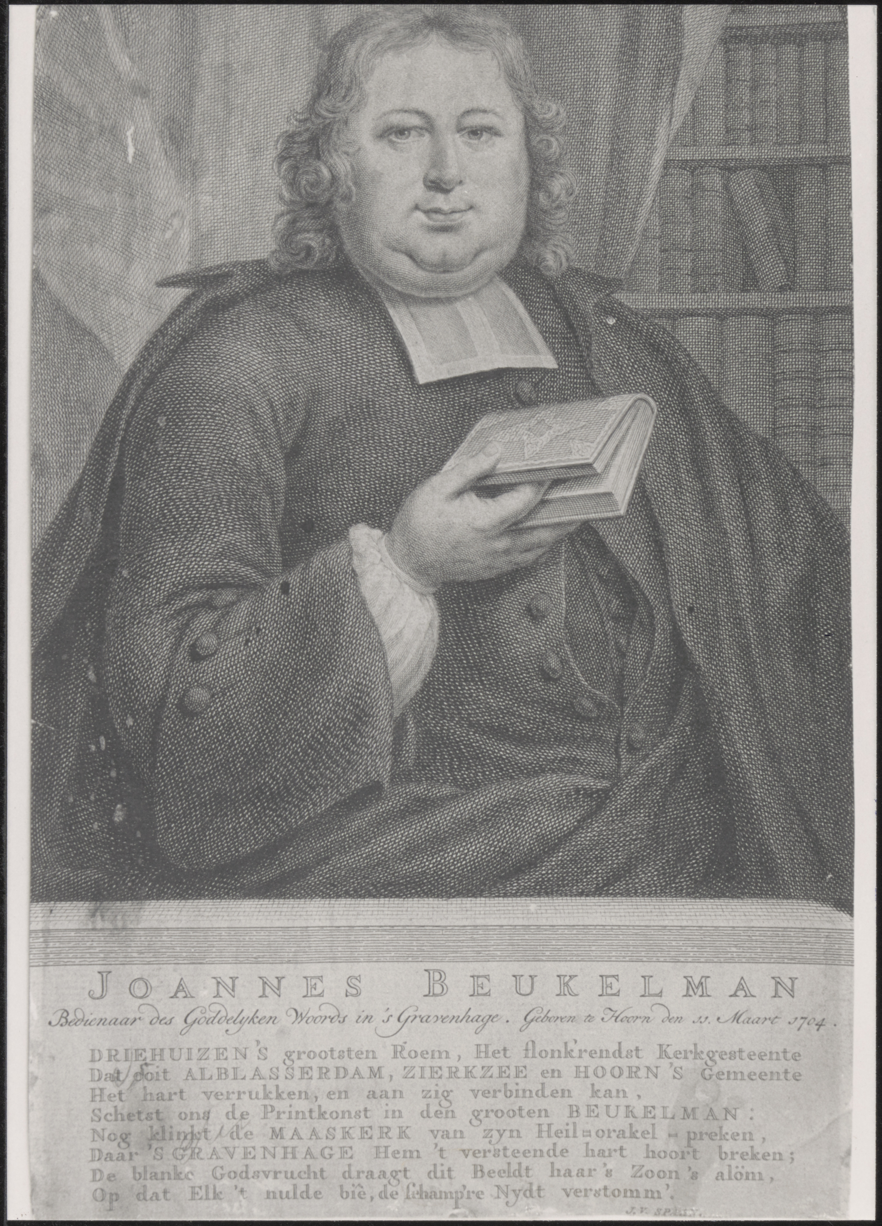 Ds. Joannes Beukelman geboren 1704, predikant van 1728 tot 1730 in Alblasserdam.