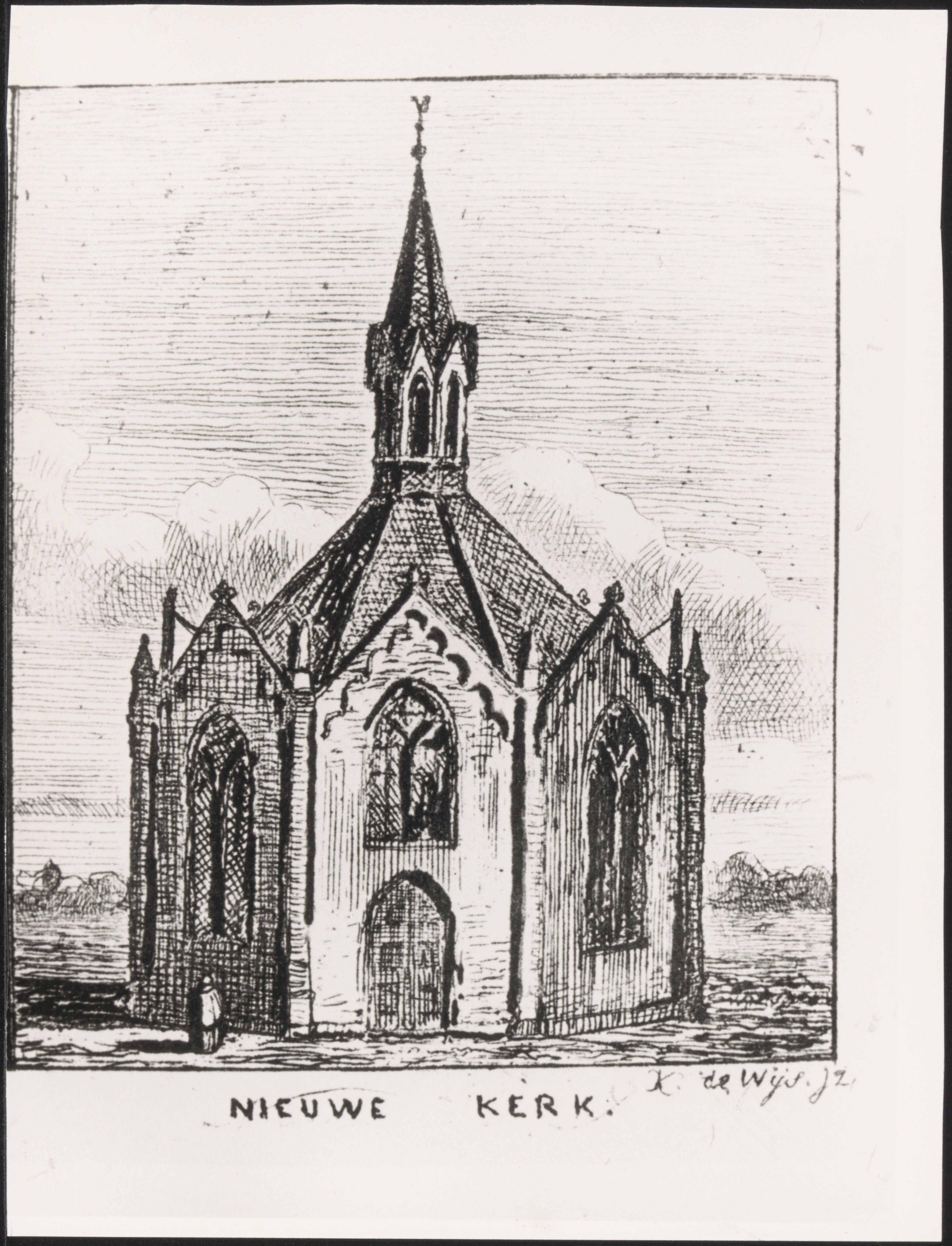Tekening van de Koepelkerk aan het Cortgene in Alblasserdam.
