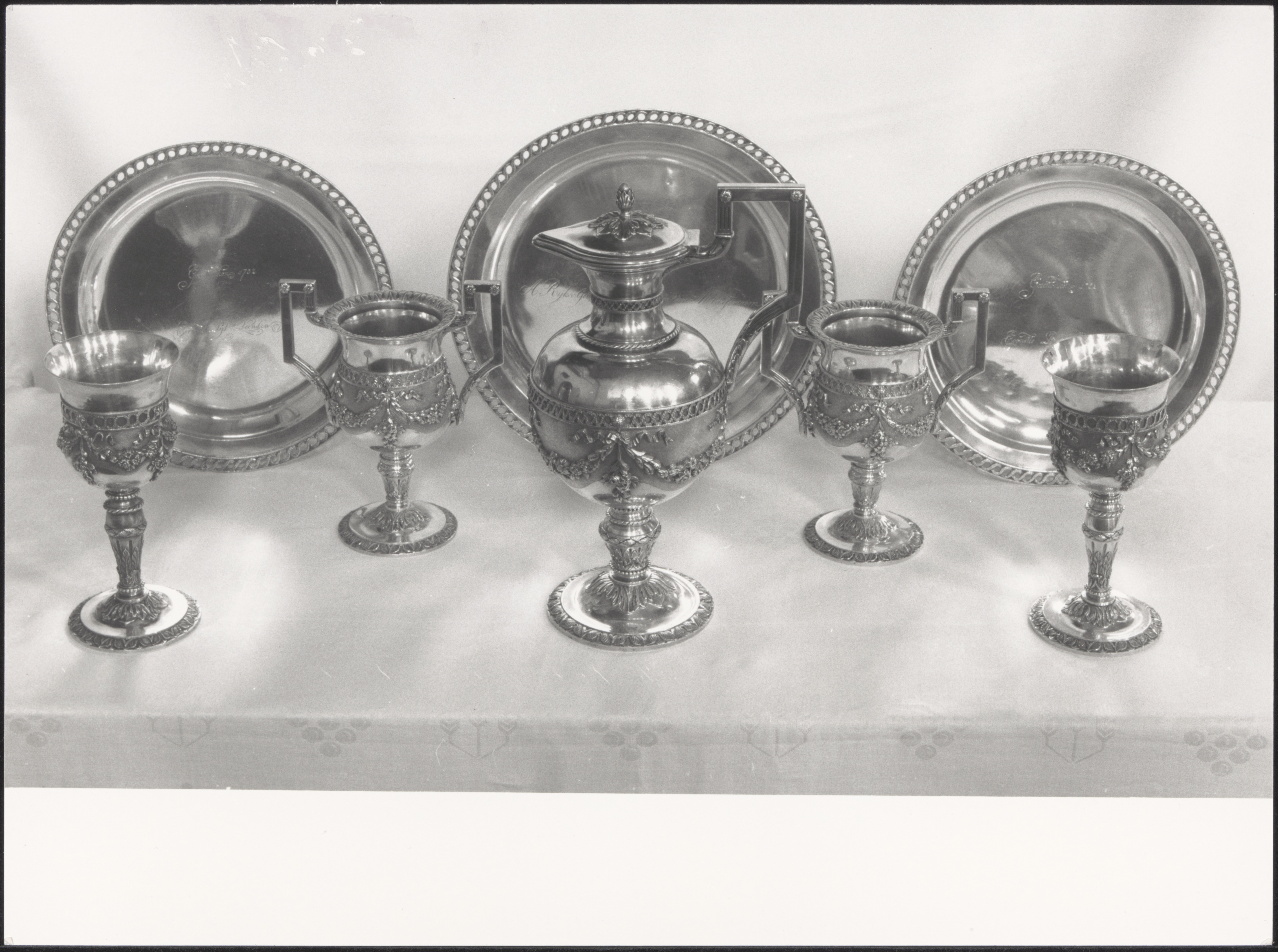 Servies van het Heilig Avondmaal van de Hervormde Kerk aan het Cortgene in Alblasserdam.