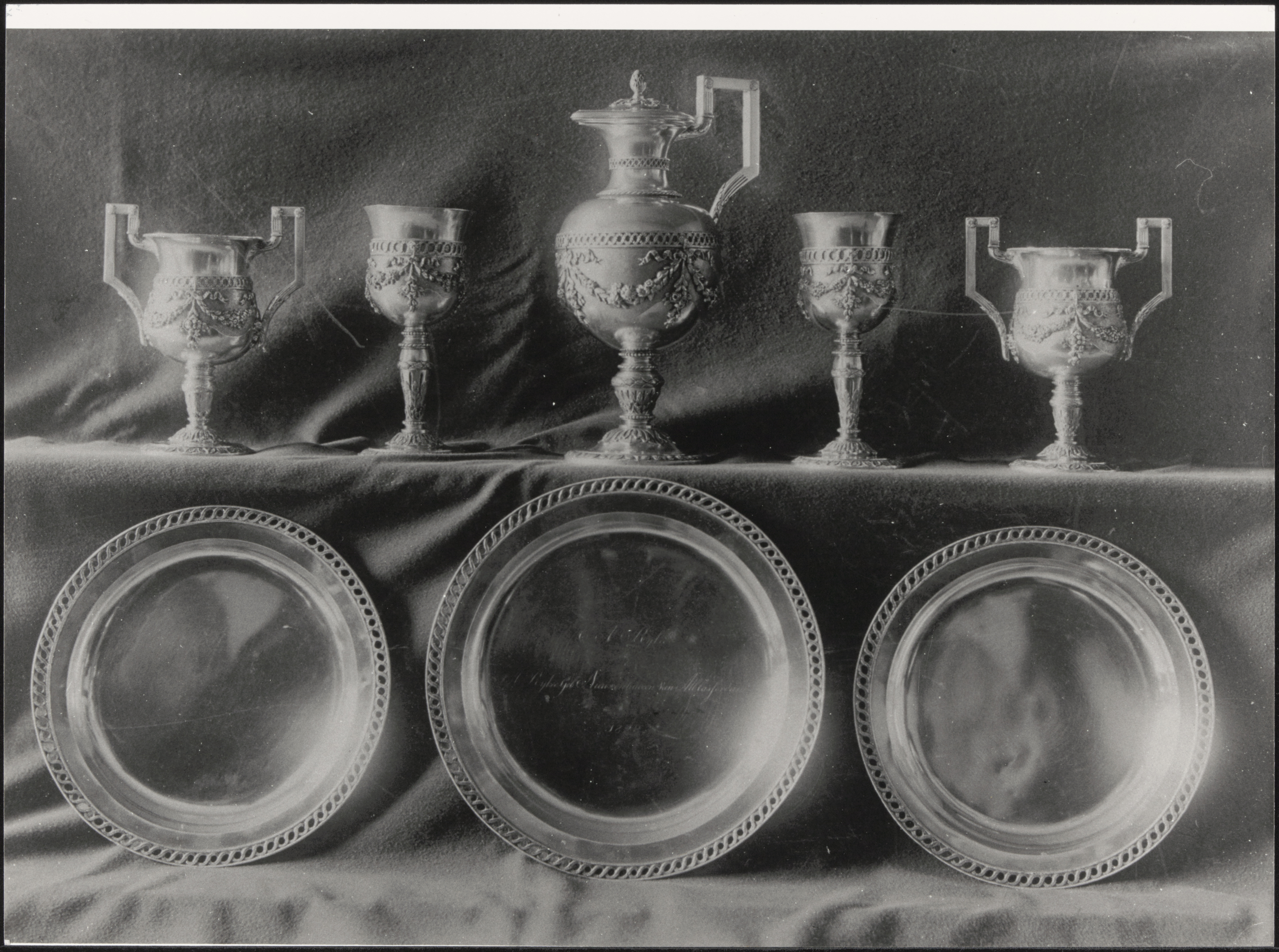 Servies van het Heilig Avondmaal van de Hervormde Kerk aan het Cortgene in Alblasserdam.