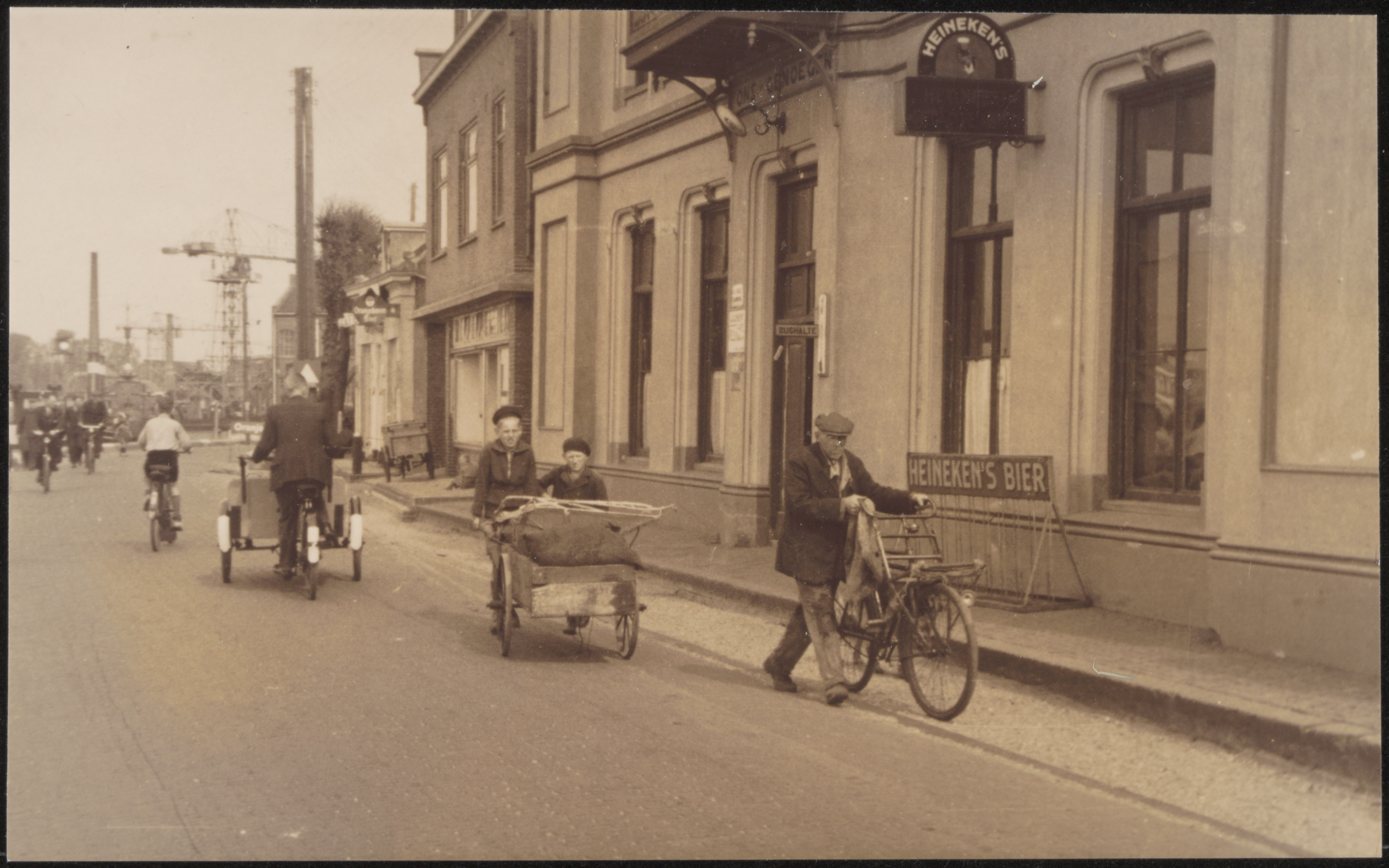 - bakfietsen cafés elektriciteitspalen / telefoonpalen fietsers handkarren sociëteiten