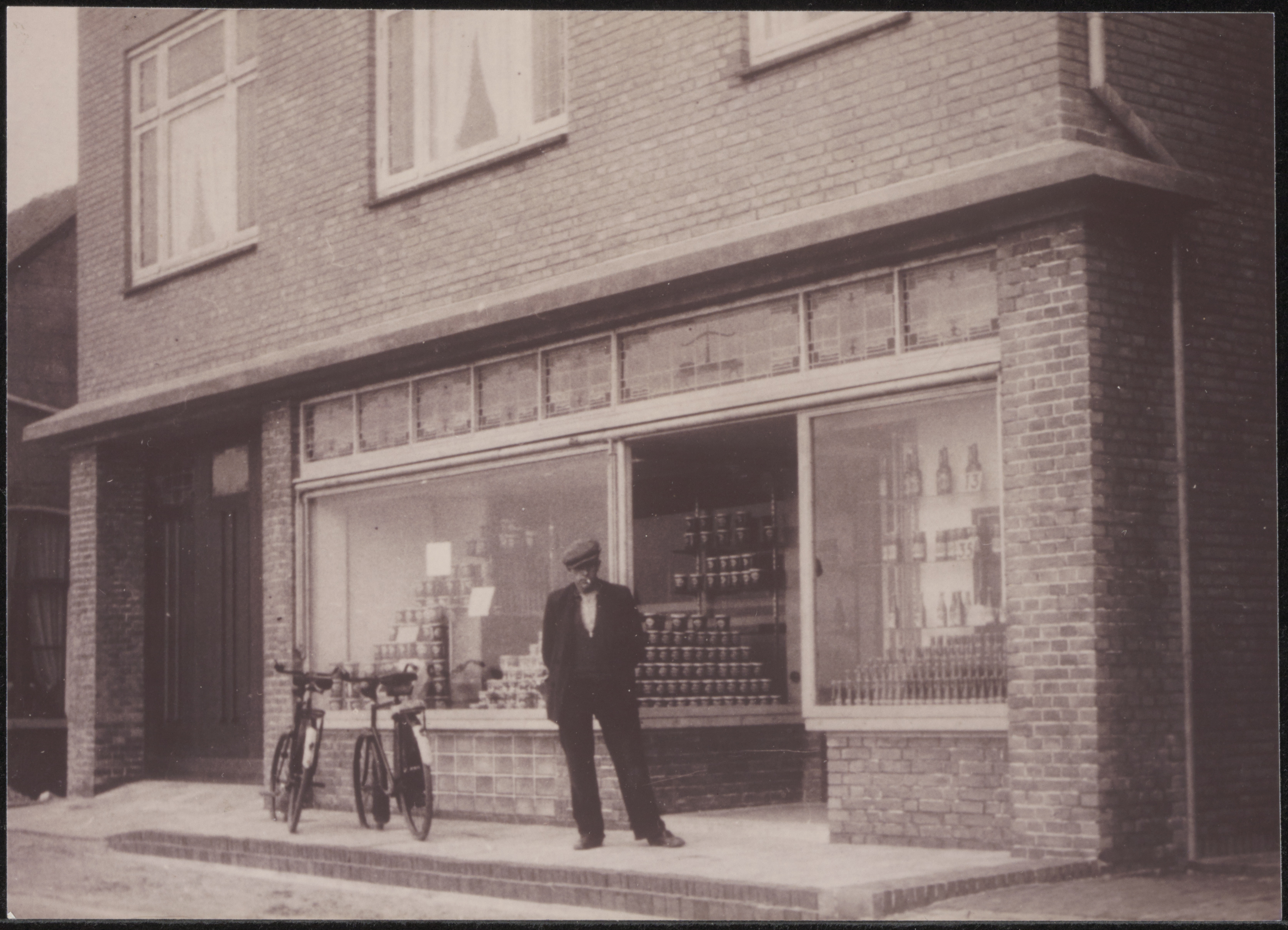 - Jan Tuijtel voor zijn winkel in grutterswaren op de Dam in Alblasserdam,