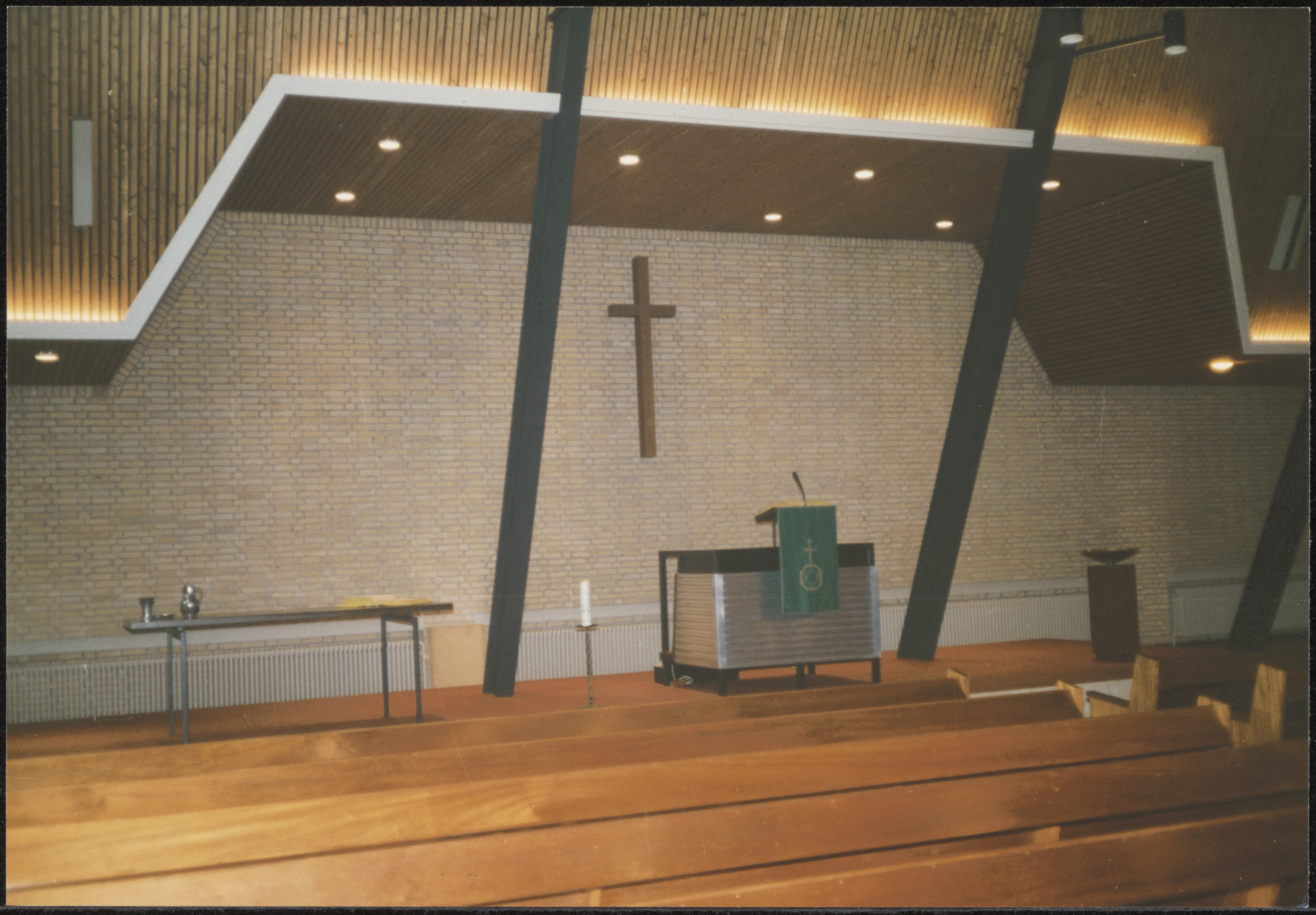 Interieur van de Elthetokerk aan de Blokweerweg Alblasserdam.