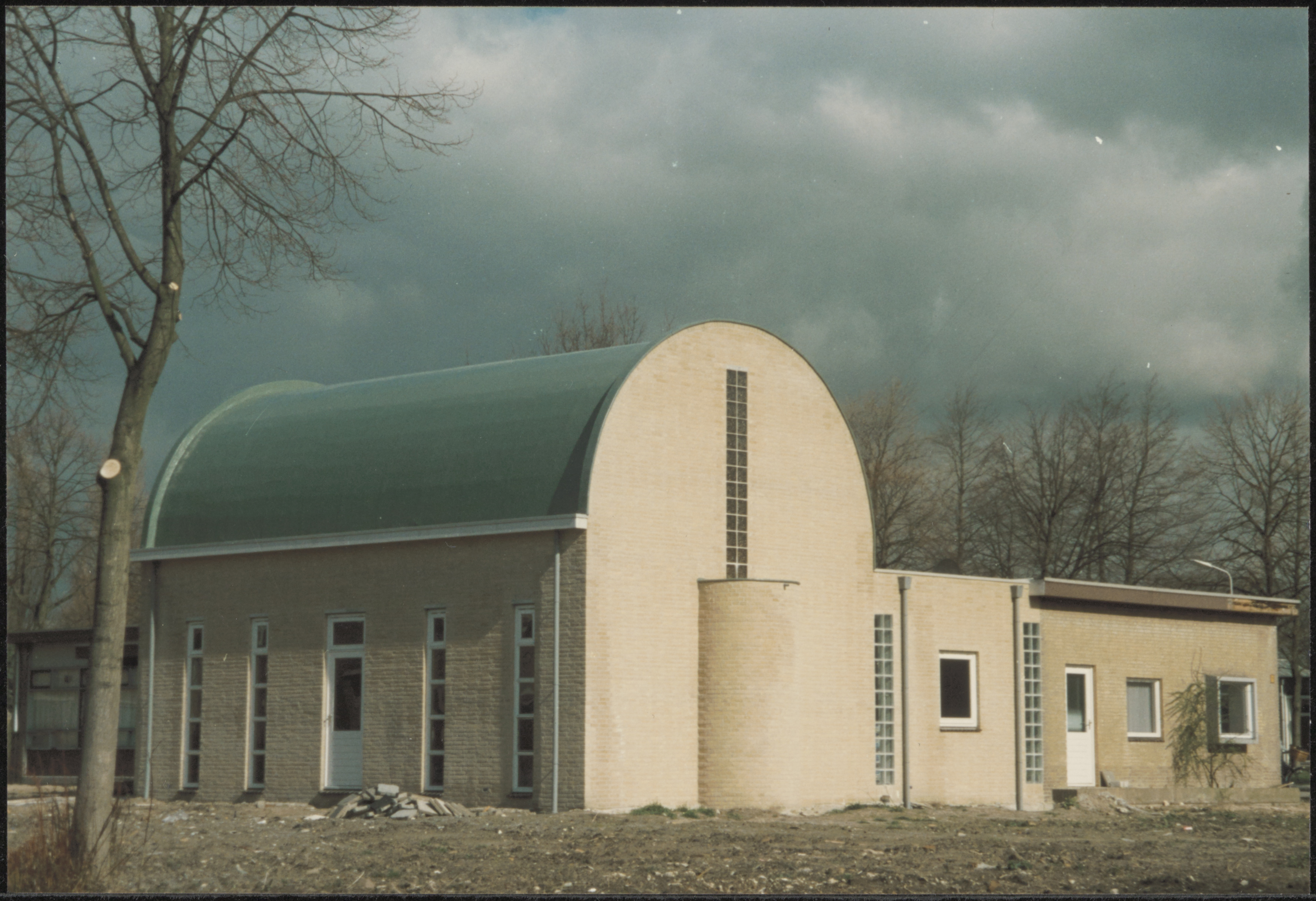 - De Yunus Emre moskee aan de zijde van de Esdoormlaan, hoek Anjerstraat in Alblasserdam.