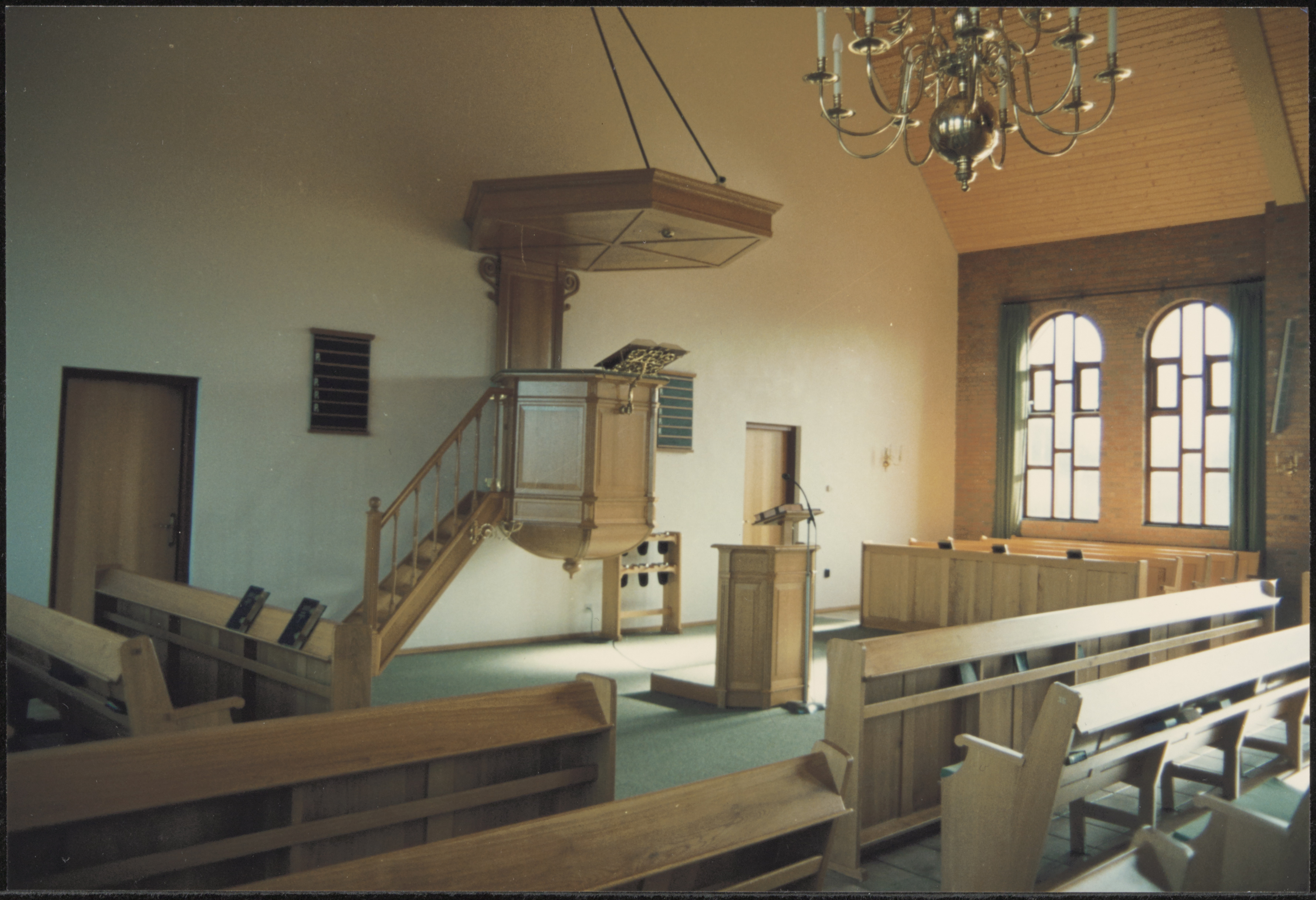 - Interieur van de kerk van de Oud Gereformeerde Gemeente aan het Ds. B.Toesplein in Alblasserdam.