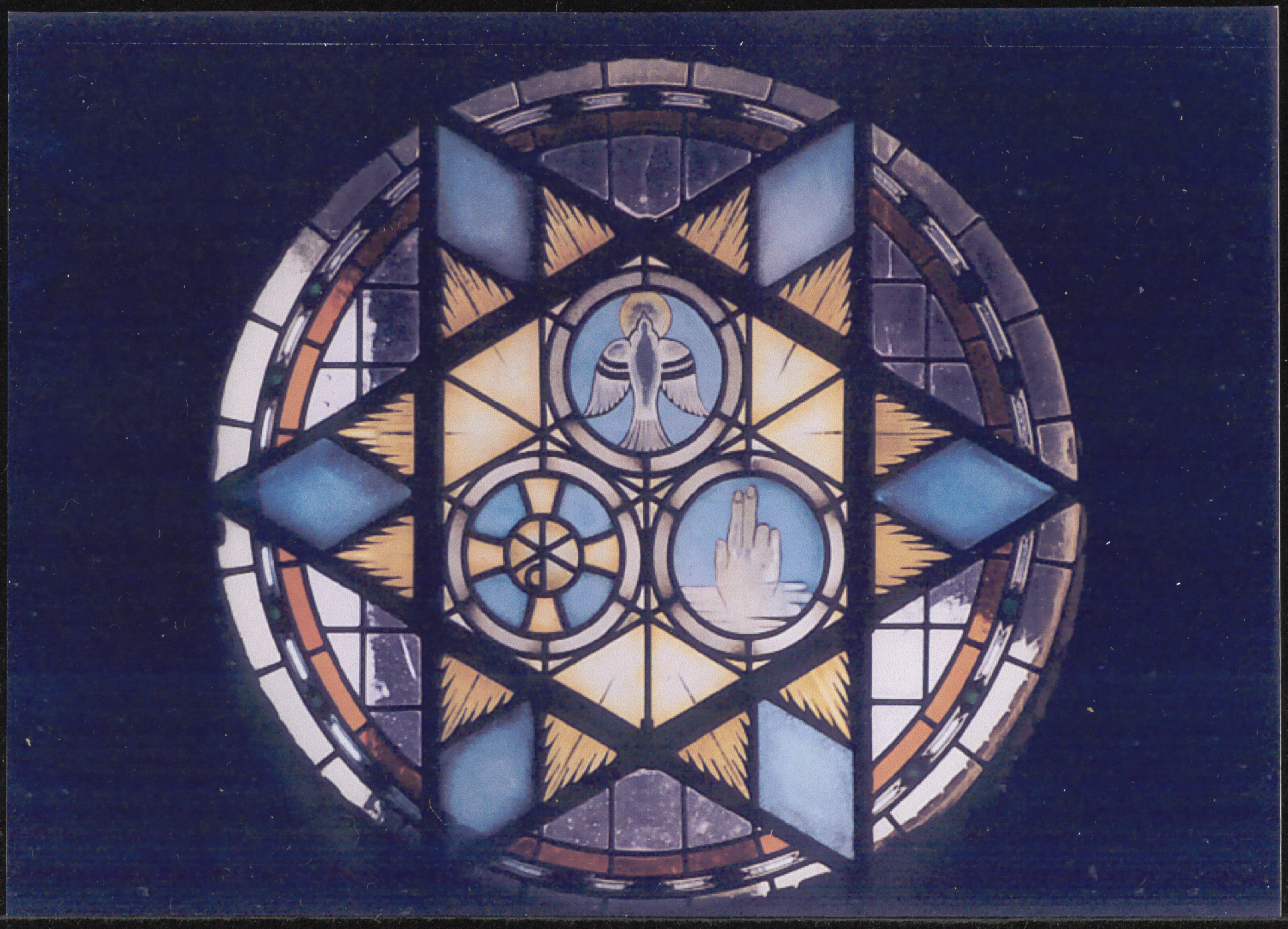 Gebrandschilderd raam aan de achterzijde van de Christelijk Gereformeerde Kerk aan de …
