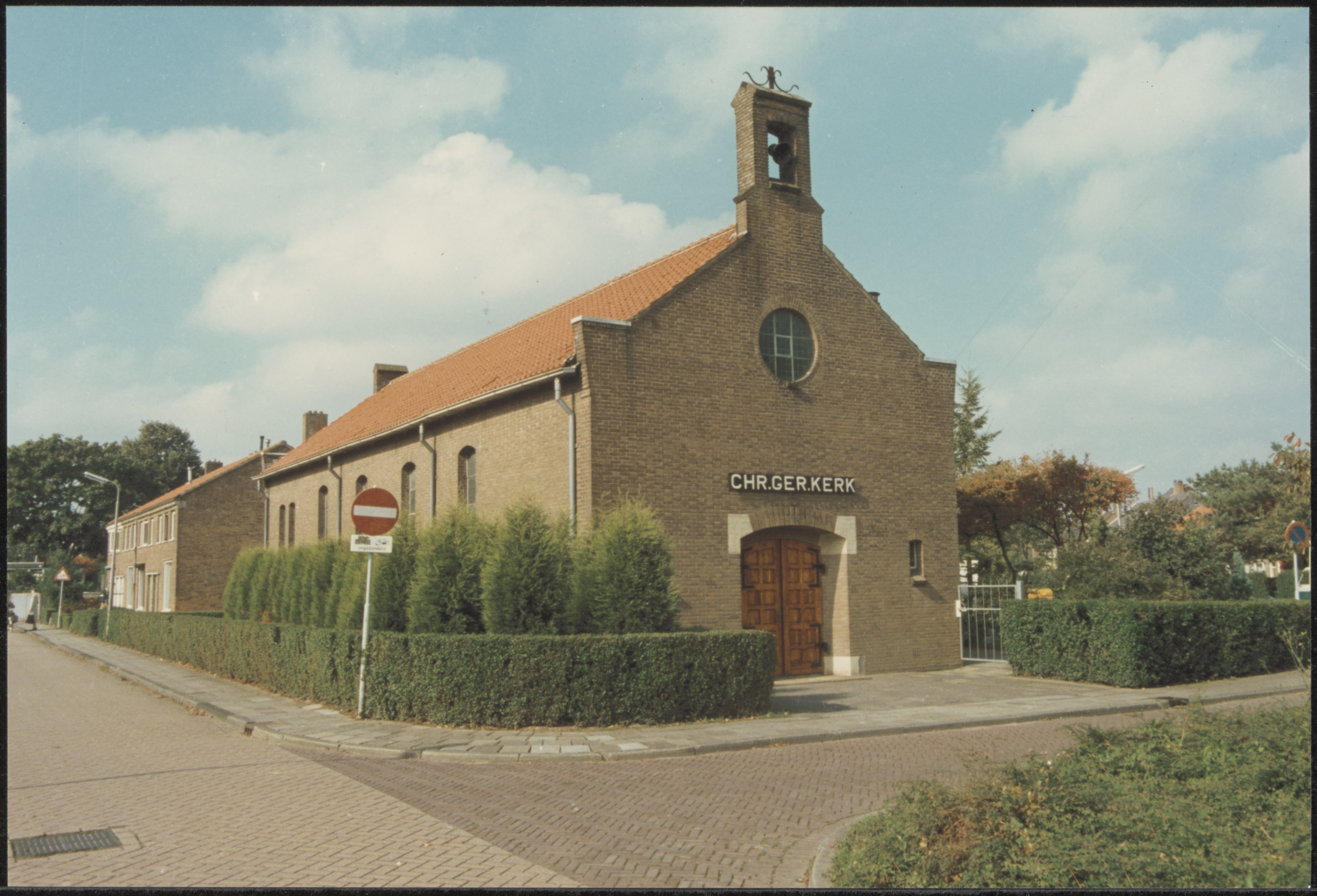 Christelijk Gereformeerde Kerk aan de Waalsmondelaan (rechts) op de hoek van de …