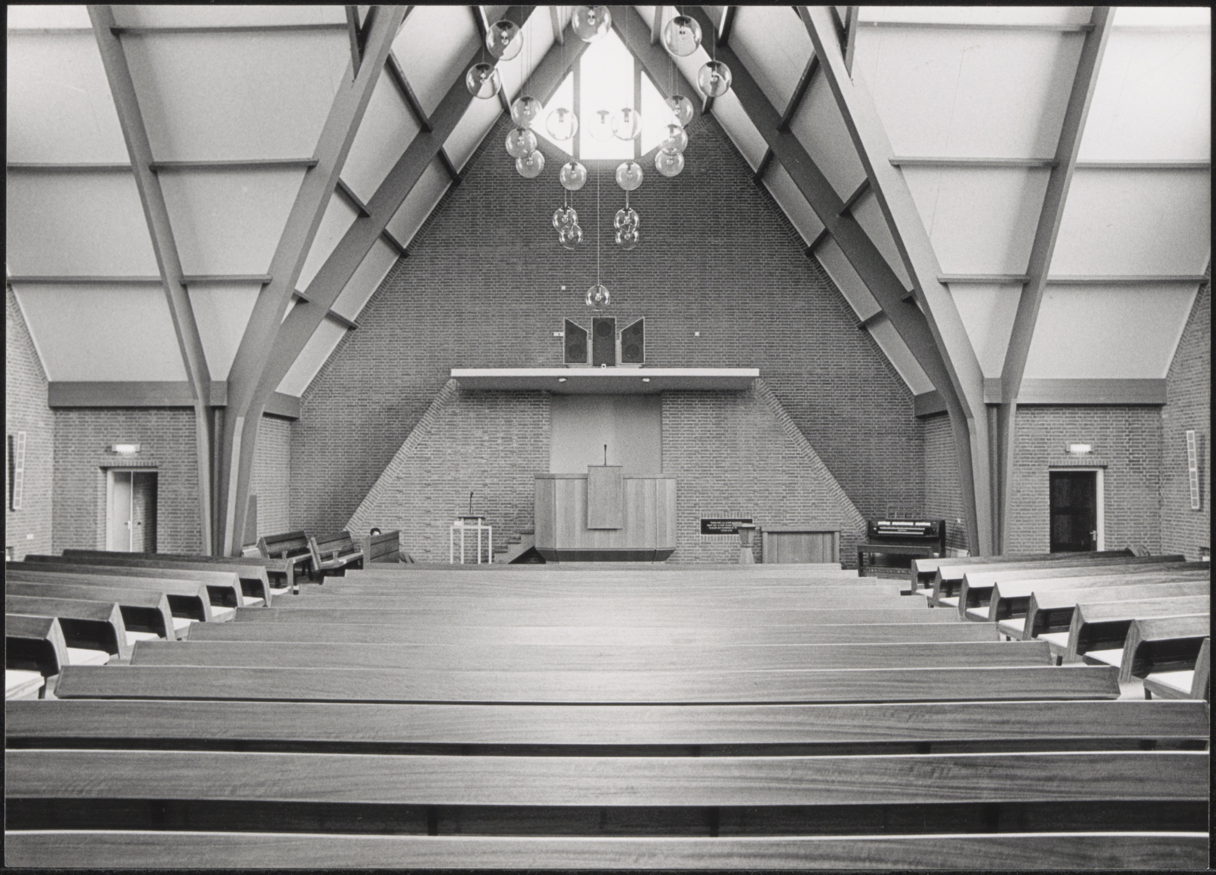 - Interieur van de Gereformeerde gemeente Eben Haëzer aan de Plantageweg in Alblasserdam.