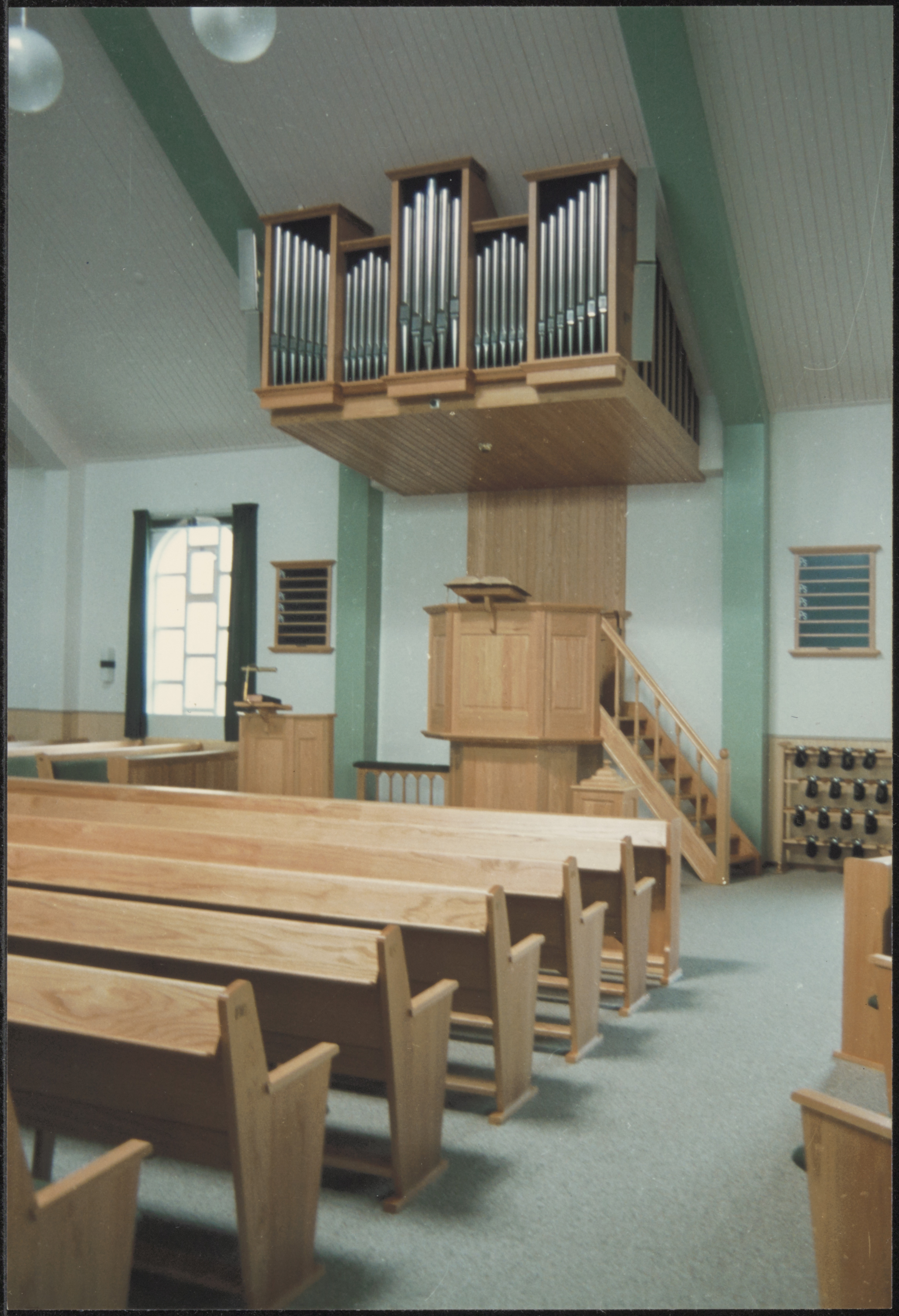 - Interieur van de Gereformeerde Gemeente aan de Kerkstraat in Alblasserdam.