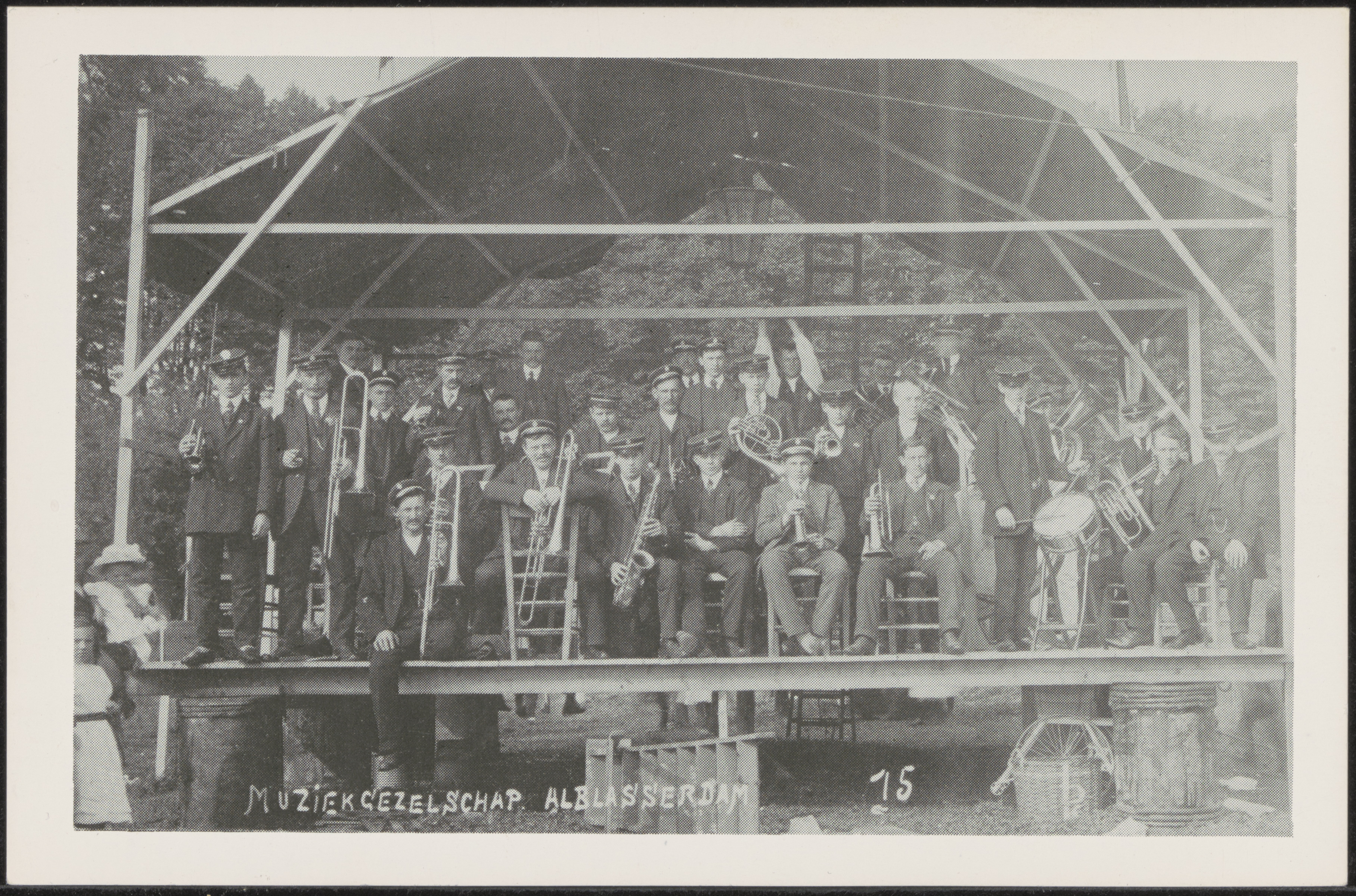 - Muziekgezelschap Excelsior in de Cortje polder in Alblasserdam tijdens de viering van 100 jaar onafhankelijk Nederland
