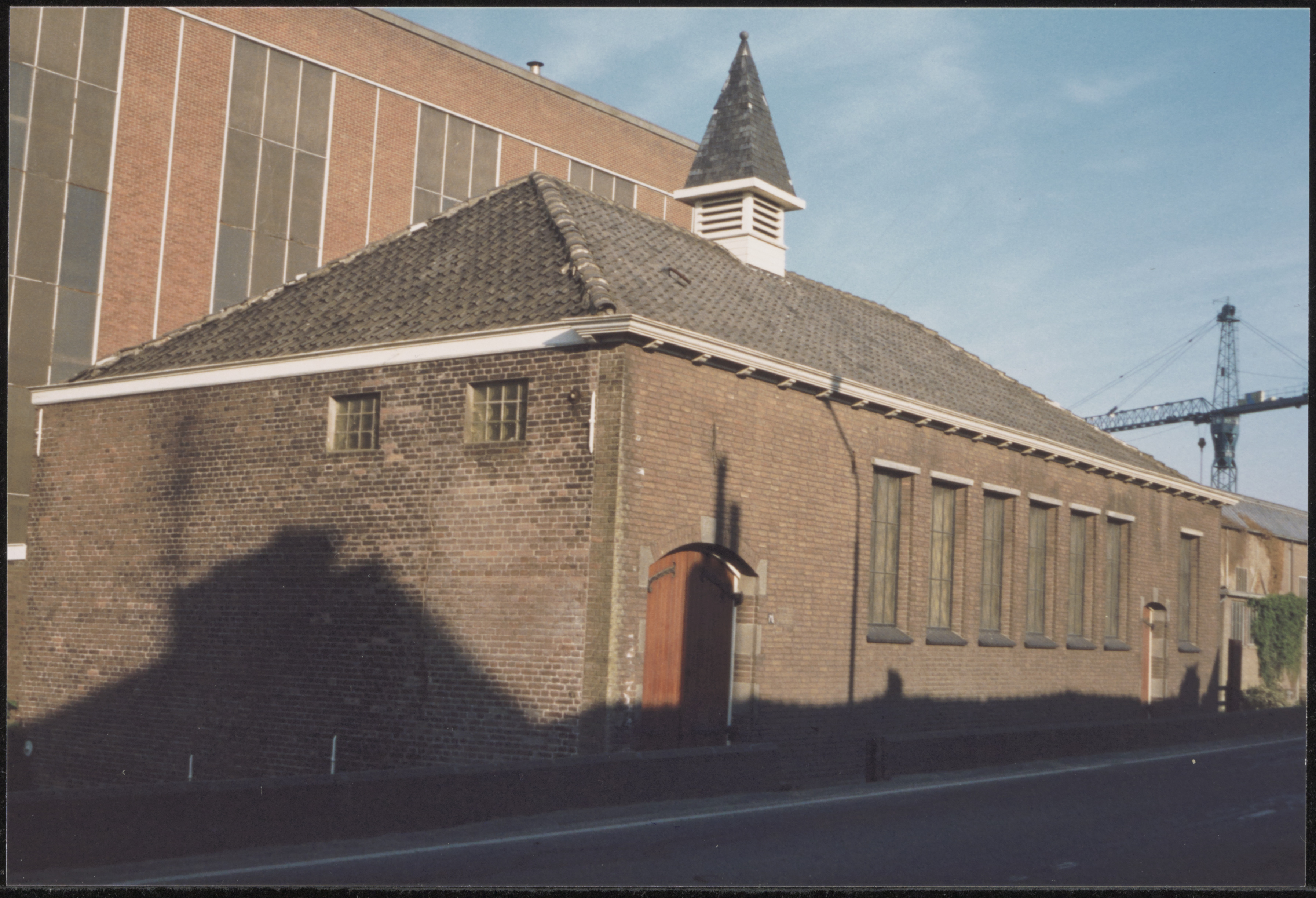 - Oud Gereformeerde Gemeente aan de West Kinderdijk in Alblasserdam. Het gebouw erachter is constructiebedrijf Mercon-Kloos.
