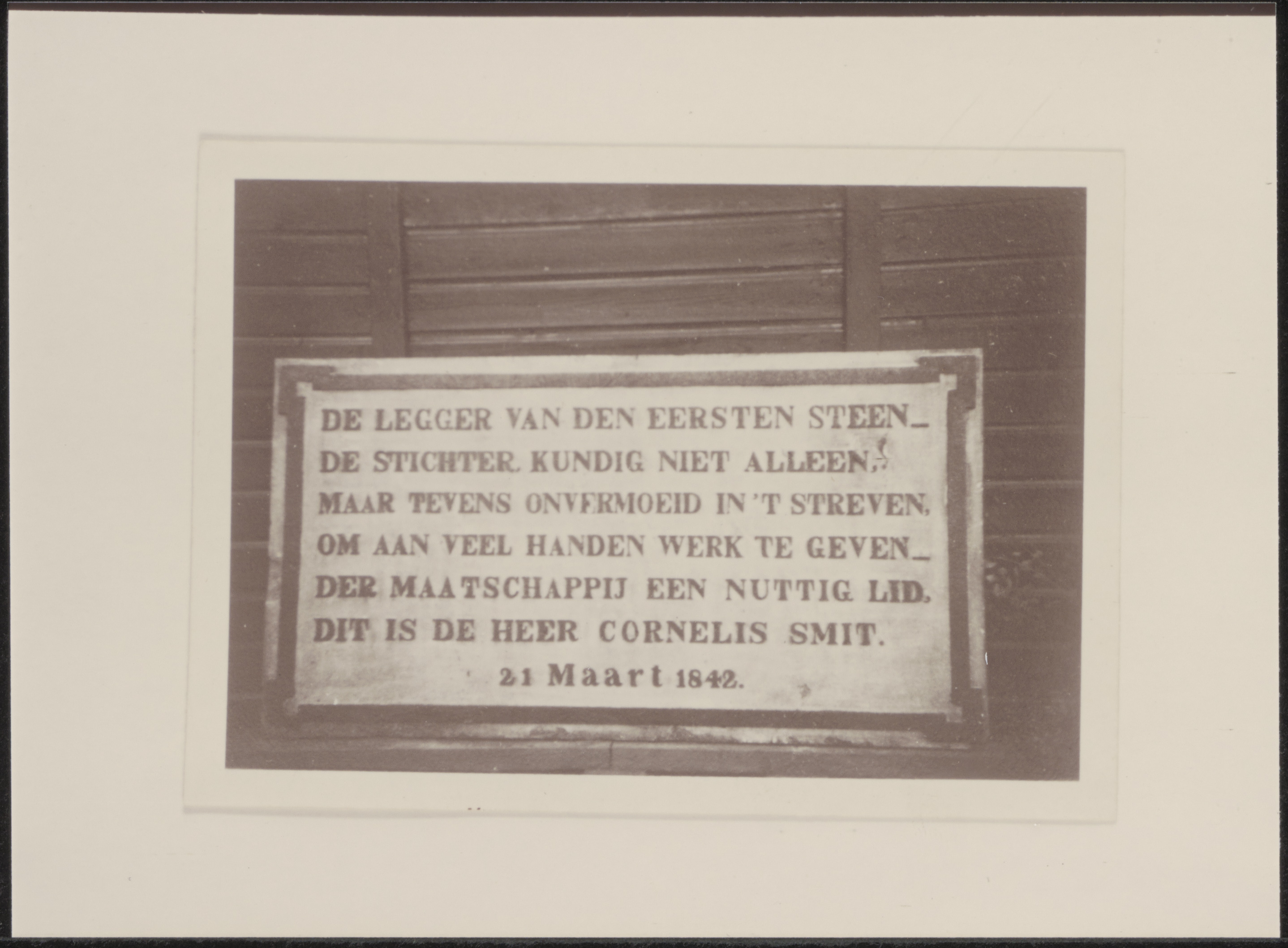 - Gedenksteen in de zijgevel van de houtzaagmolen Ons Genoegen op de Oude Werf van Jan Smit in Alblasserdam.