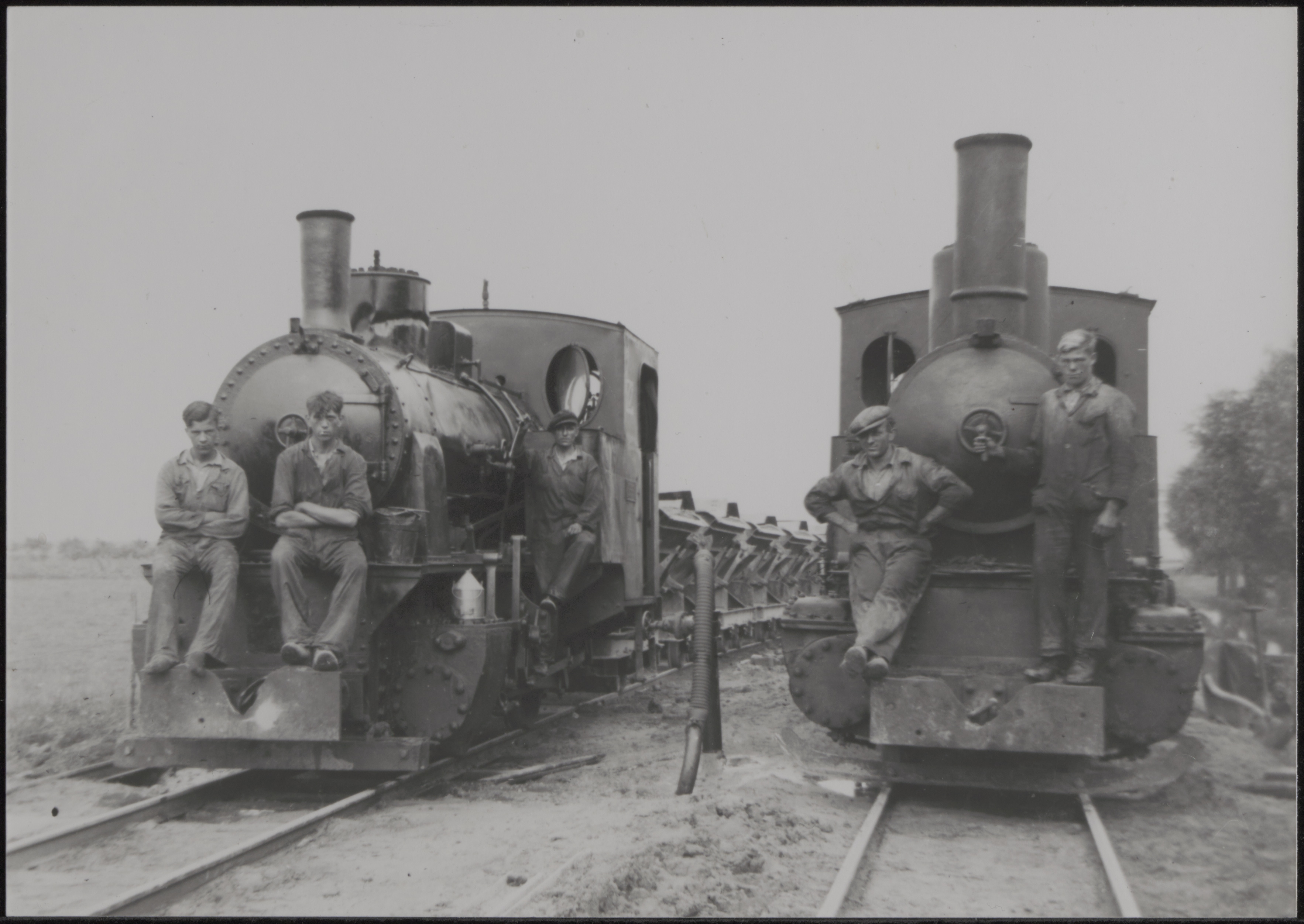 - arbeiders / werklieden autosnelwegen / rijkswegen locomotieven wegenbouw