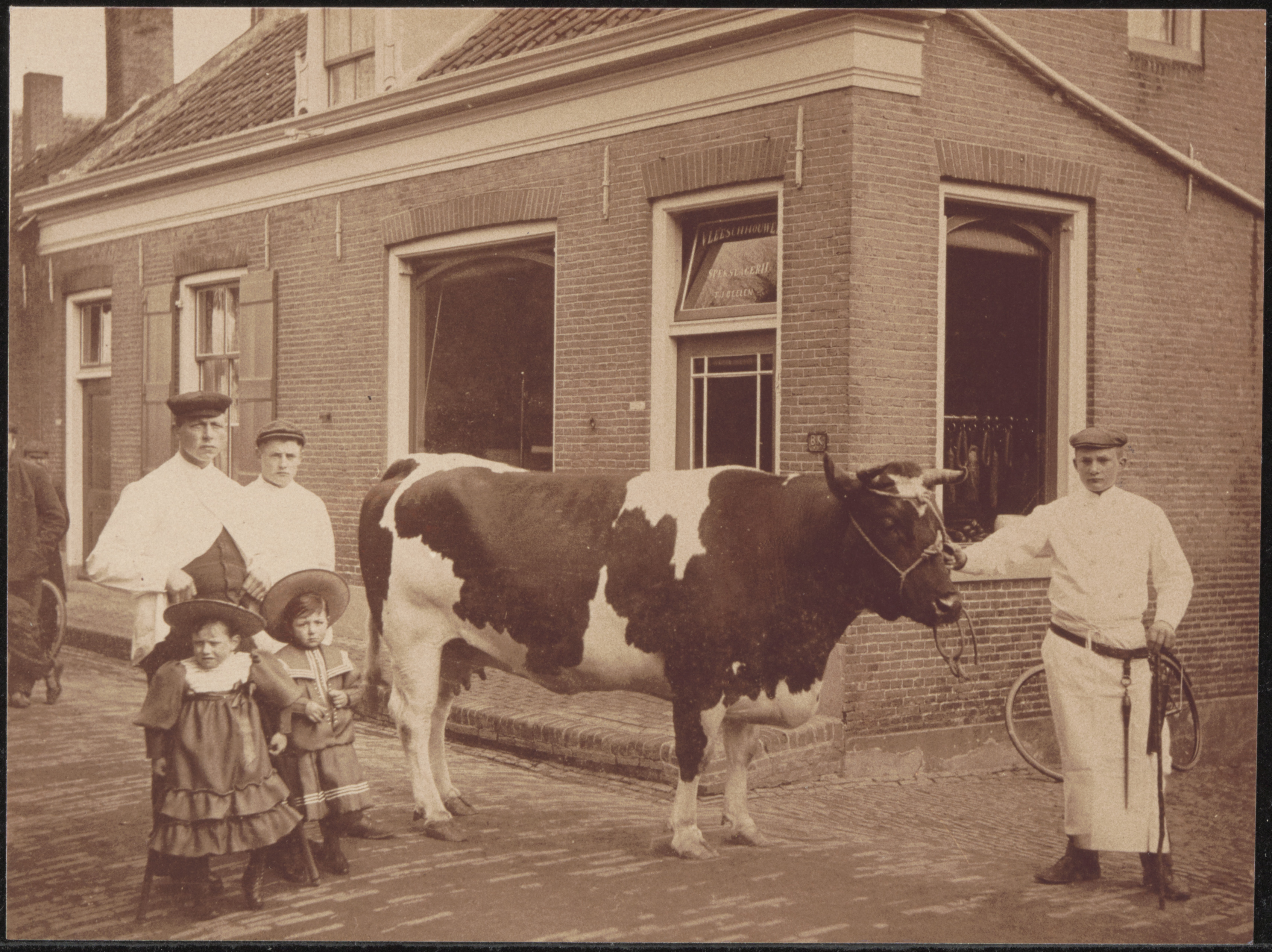 Vleeschhouwerij-spekslagerij van Teunis Jan Deelen in de Kerkstraat in Alblasserdam.
