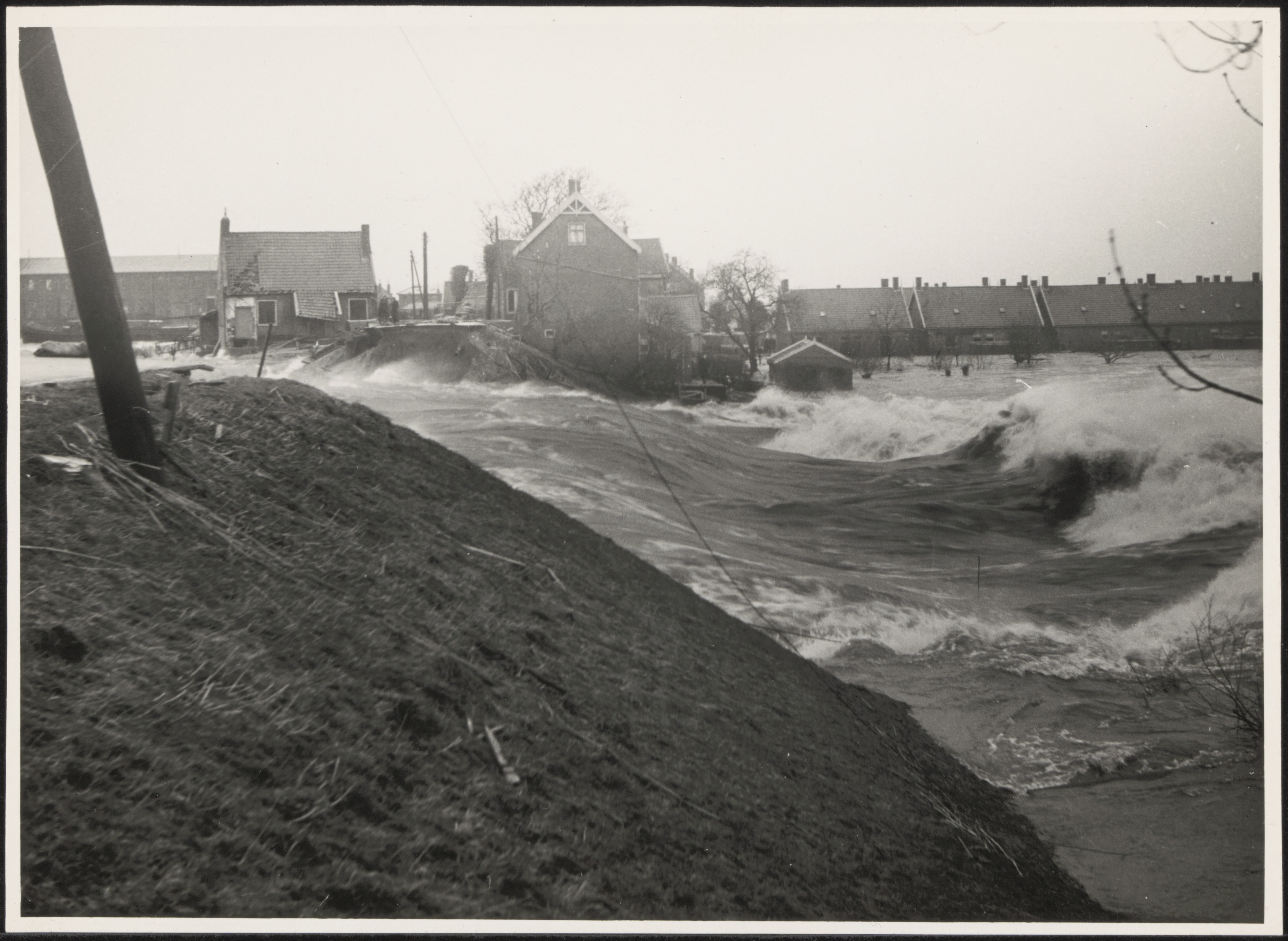 Watersnood 1953. In de vroege ochtend van 1 febr. brak in Papendrecht de dijk door op de grens van Westeinde en Noordhoek .