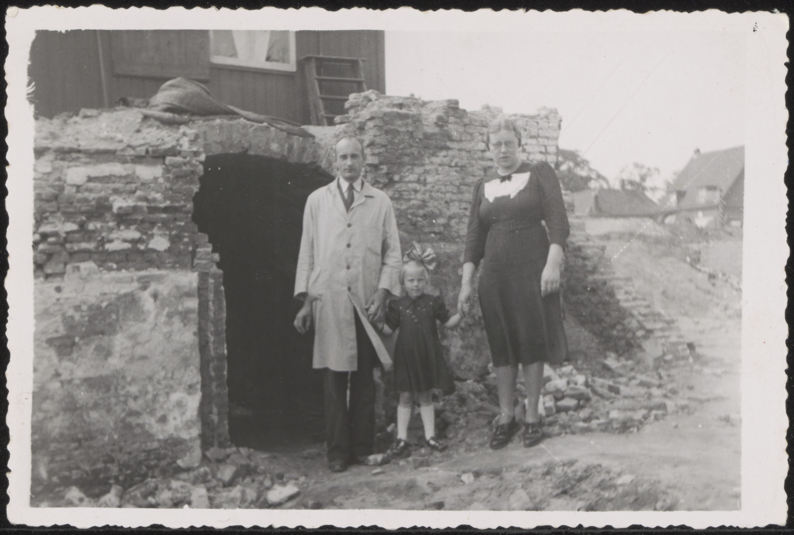 - Arie Lolkus en zijn vrouw Gijsbertje van Zessen met hun dochter Pieternella Johanna bij hun tabakswinkeltje in Alblasserdam.