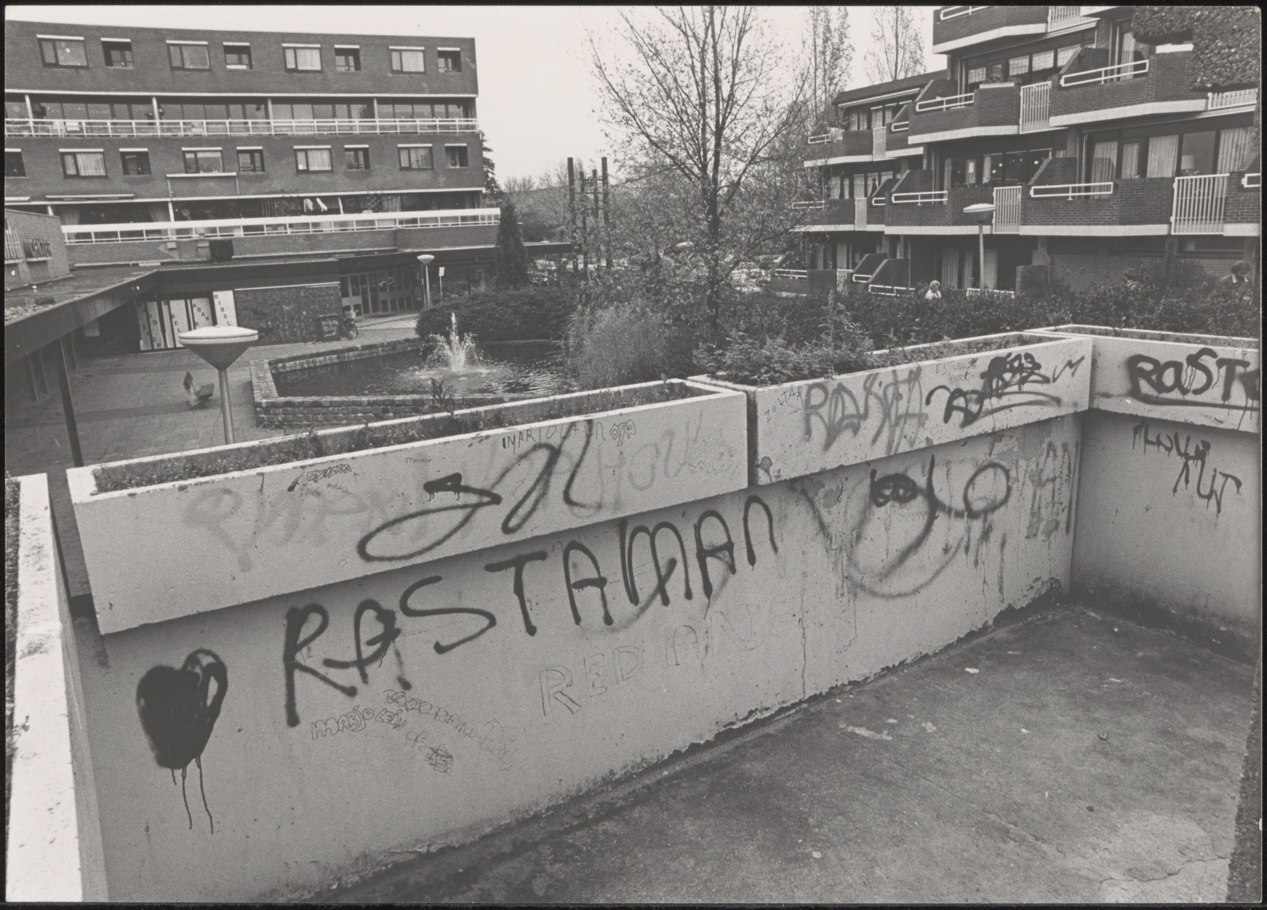 - Winkelcentrum Makado op het Wilgenplein vanaf Cortgene en rechts de flat aan Nedersassen in Alblasserdam