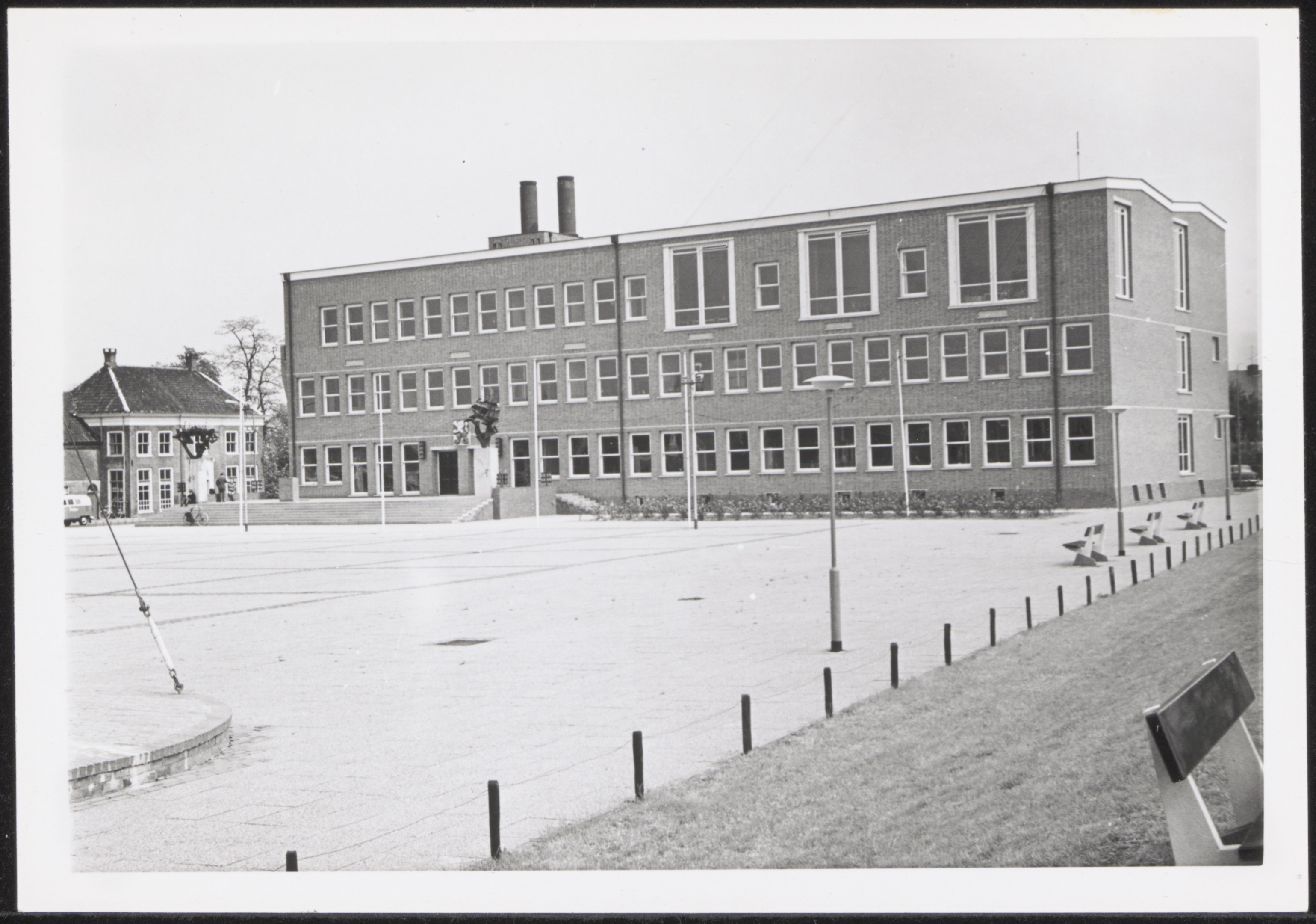 Gemeentehuis van Alblasserdam op het Raadhuisplein. Links het voormalig …