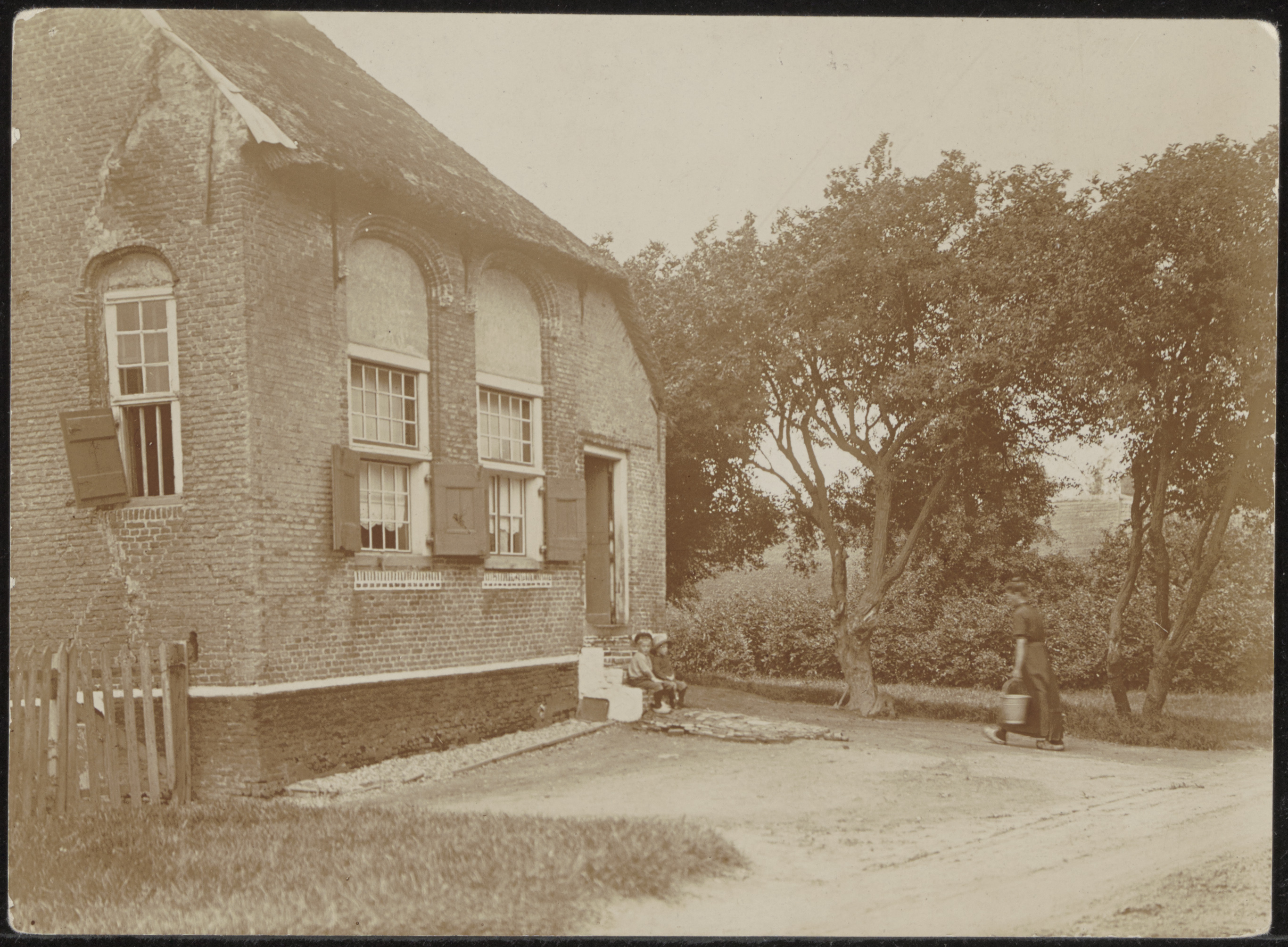 - Huis met rieten dak, boogramen en luiken aan het Westeinde in Oud-Alblas.