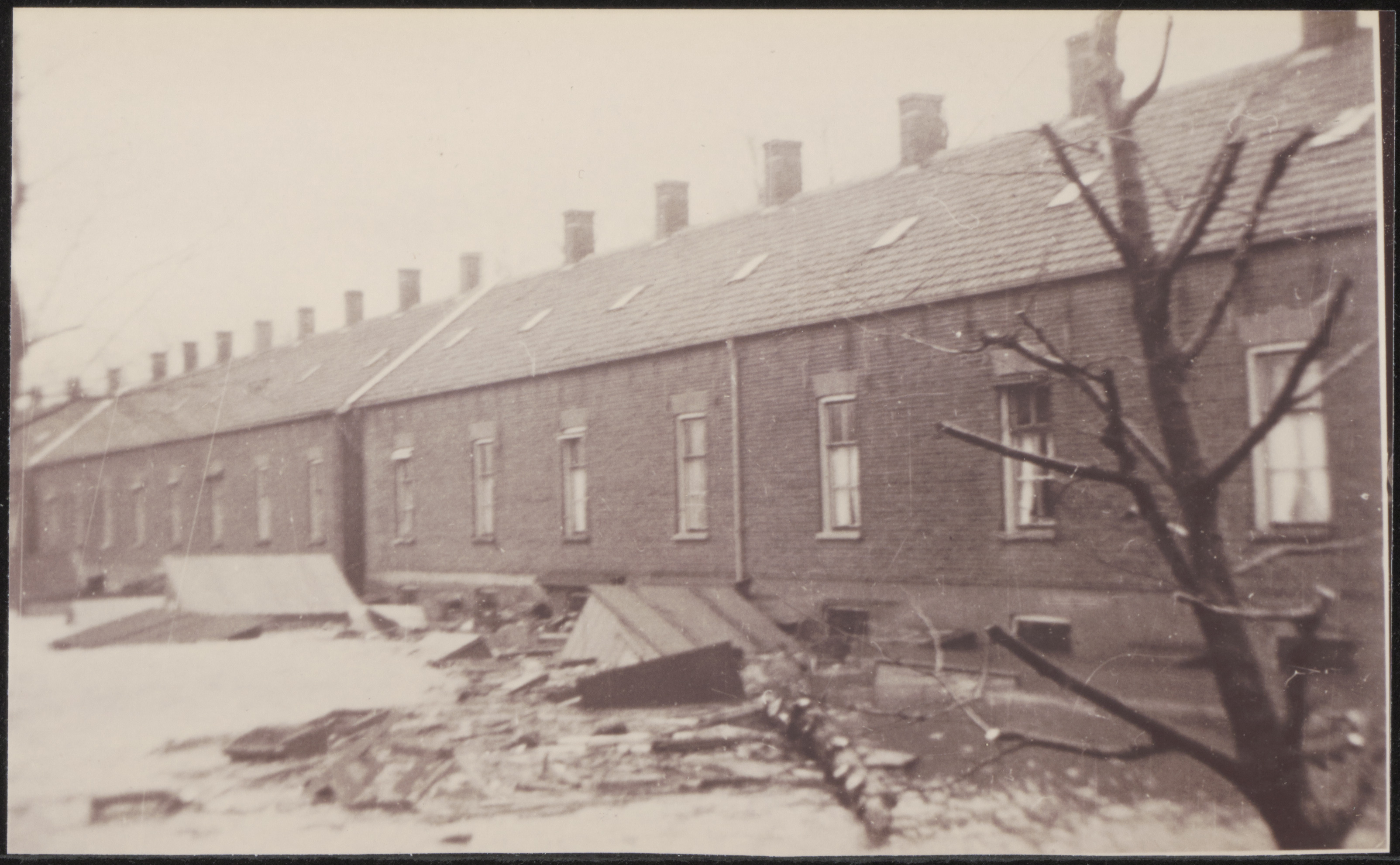 Achterzijde van de Lekkade in Kinderdijk tijdens de watersnood.