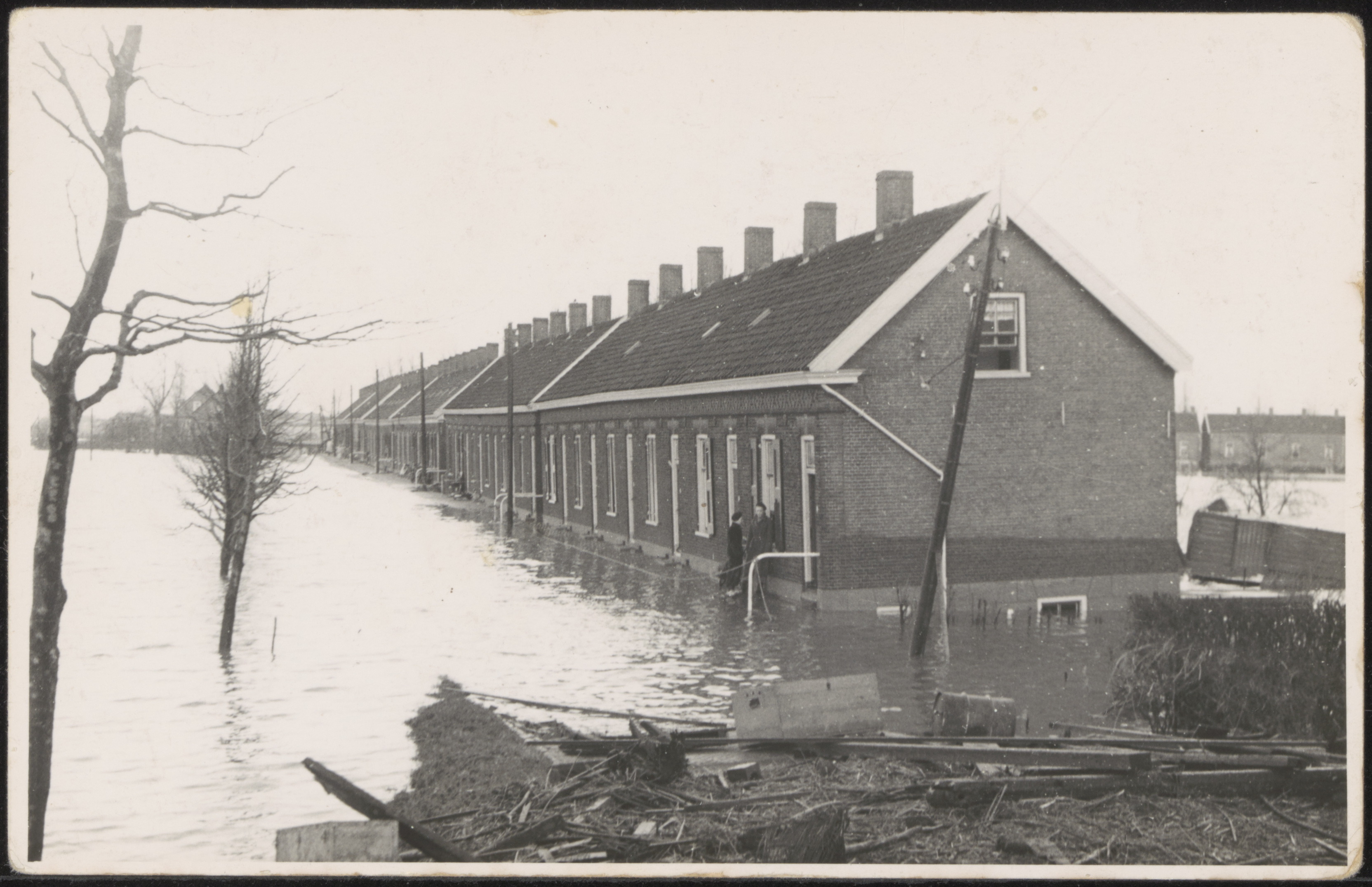 De Veerdam vanaf de Molenstraat in Kinderdijk tijdens de watersnood.