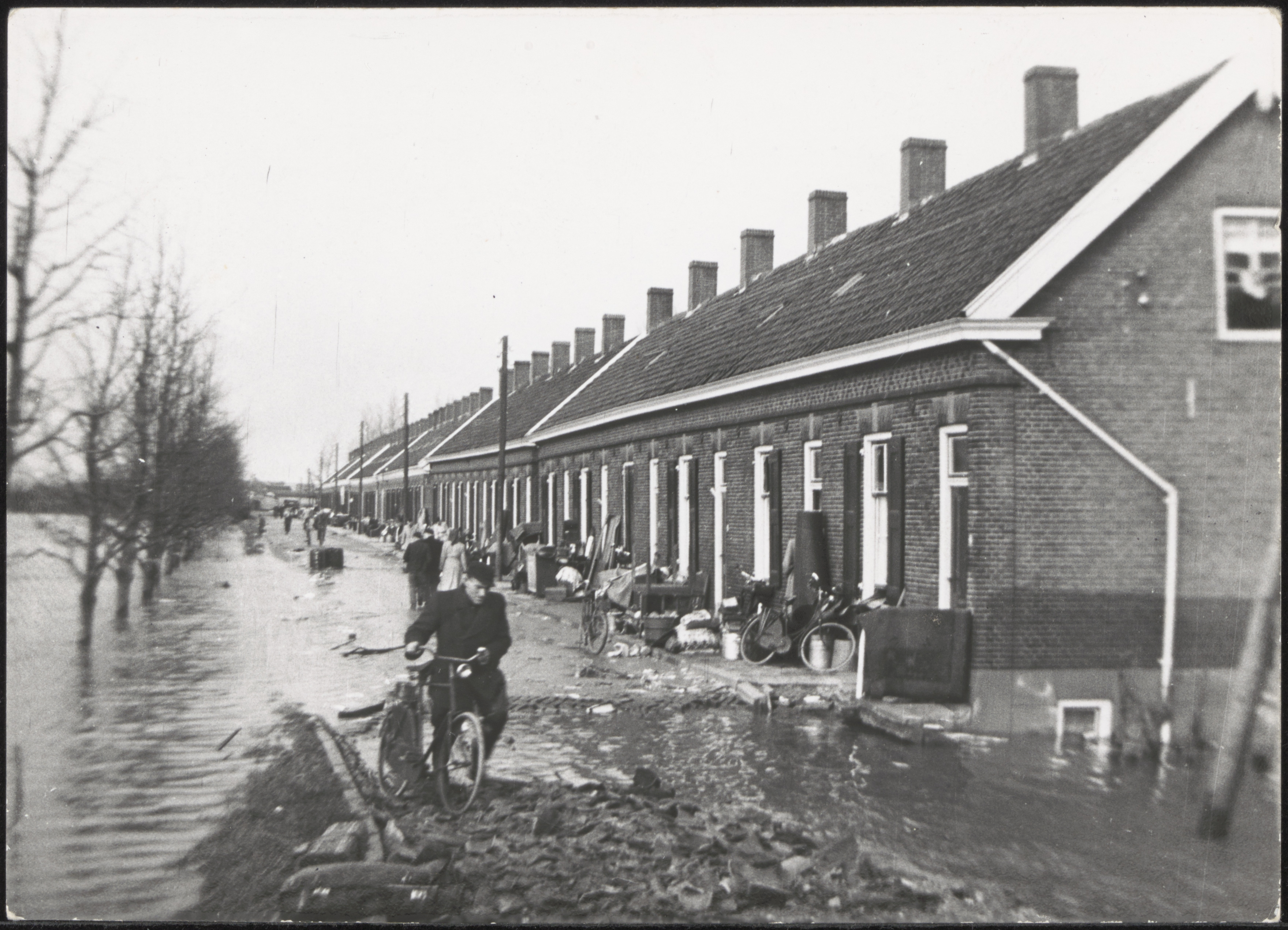 De Veerdam vanaf de Molenstraat in Kinderdijk tijdens de watersnood.