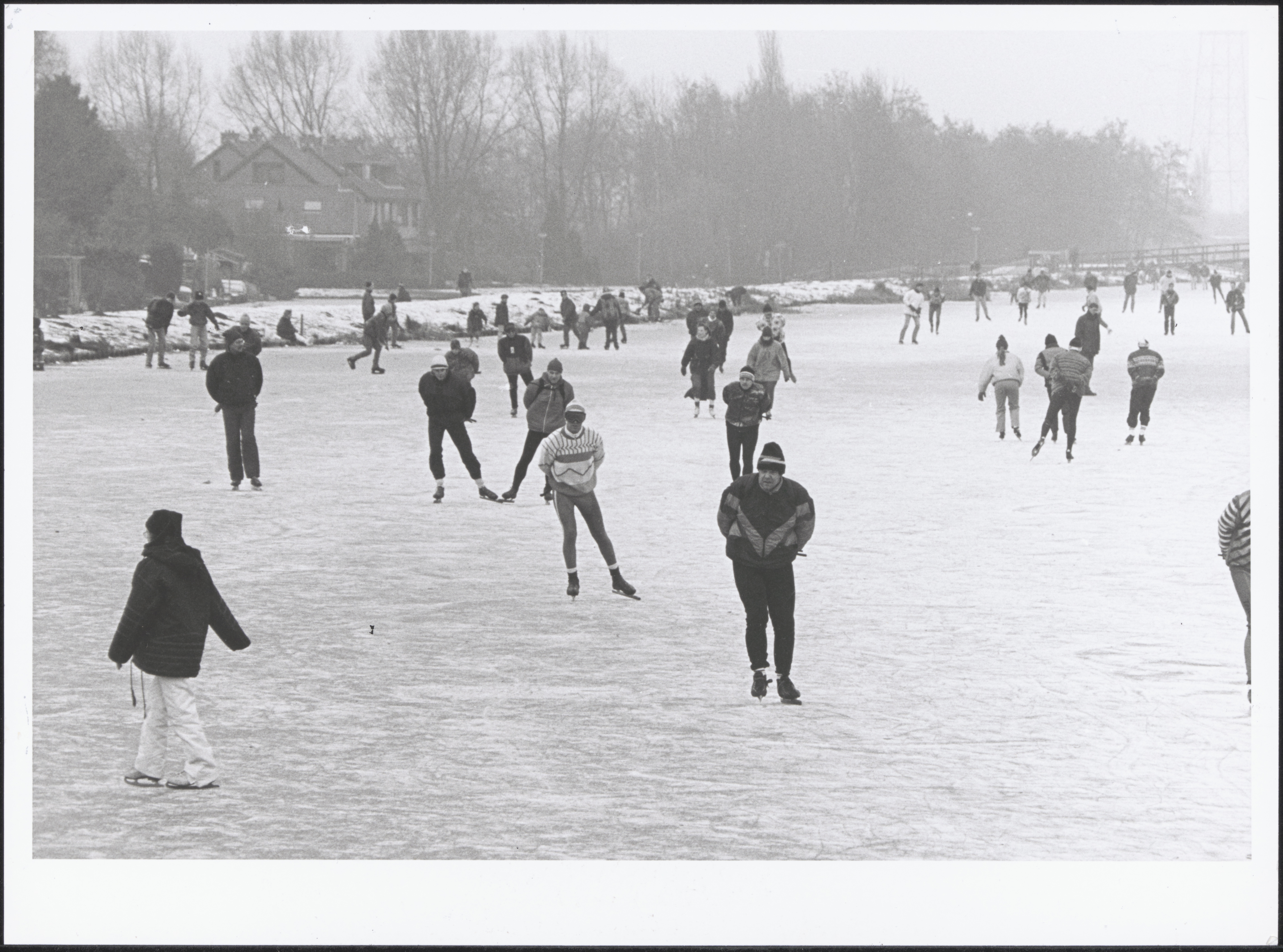 Schaatsers op de Nederwaard t.h.v. de Mesdaglaan in Alblasserdam.