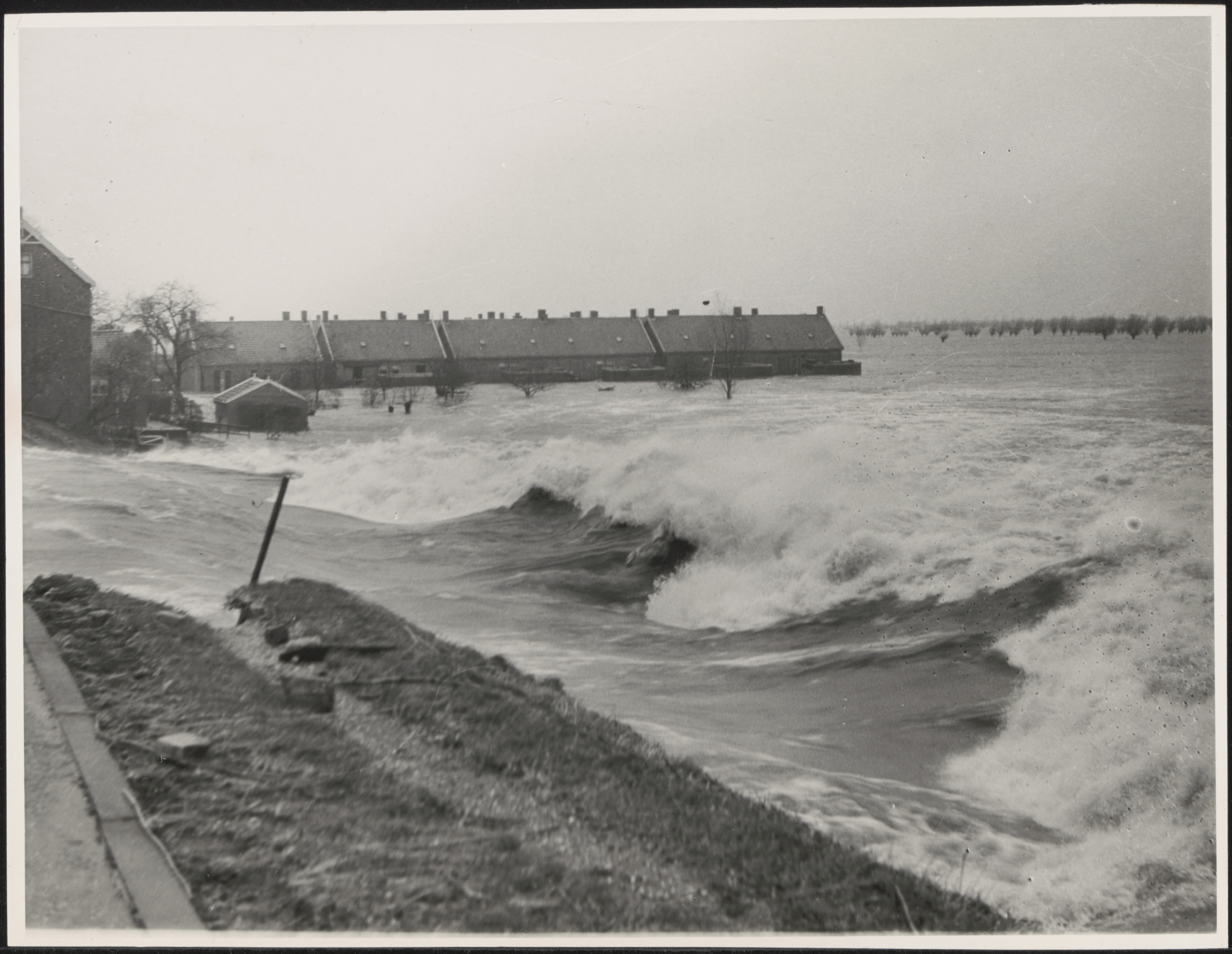 Dijkdoorbraak tijdens de watersnood op de grens van Westeind en Noordhoek in Papendrecht.