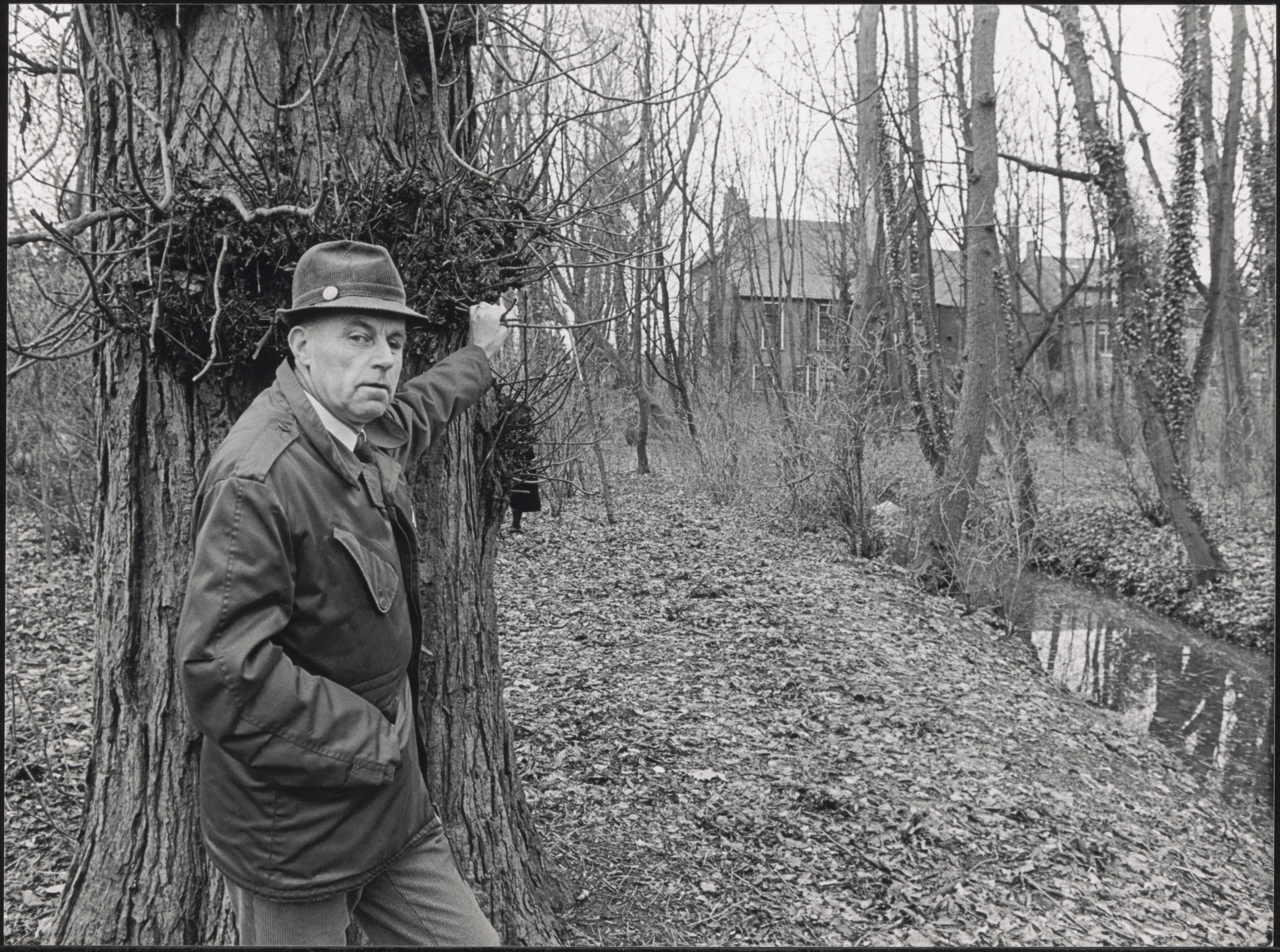 De heer Cor Veen bij het ambachtsherenhuis Huis Rijkee aan het Cortgene in Alblasserdam.
