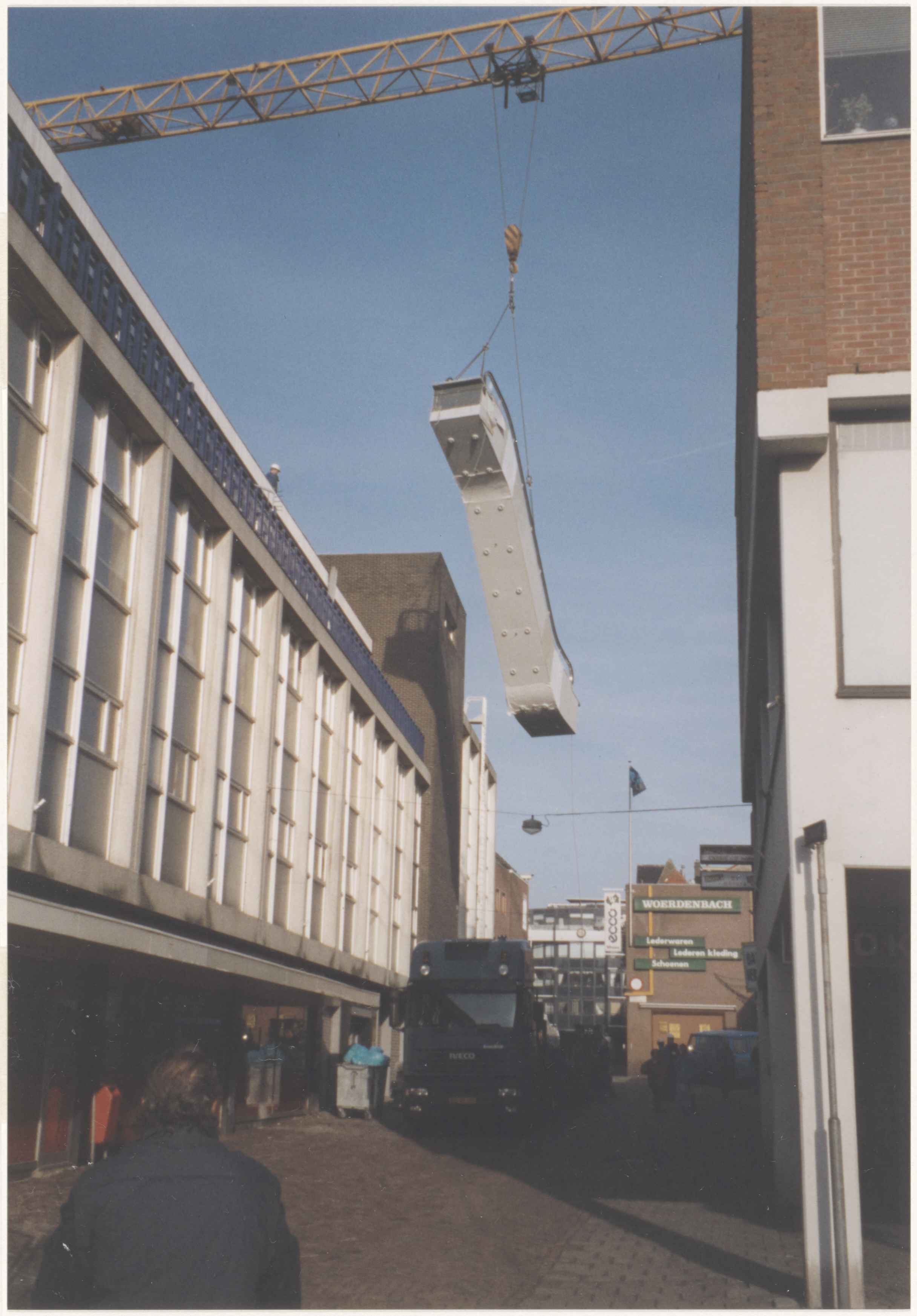 Instaleren van een roltrap naar de Vroom & Dreesmann.