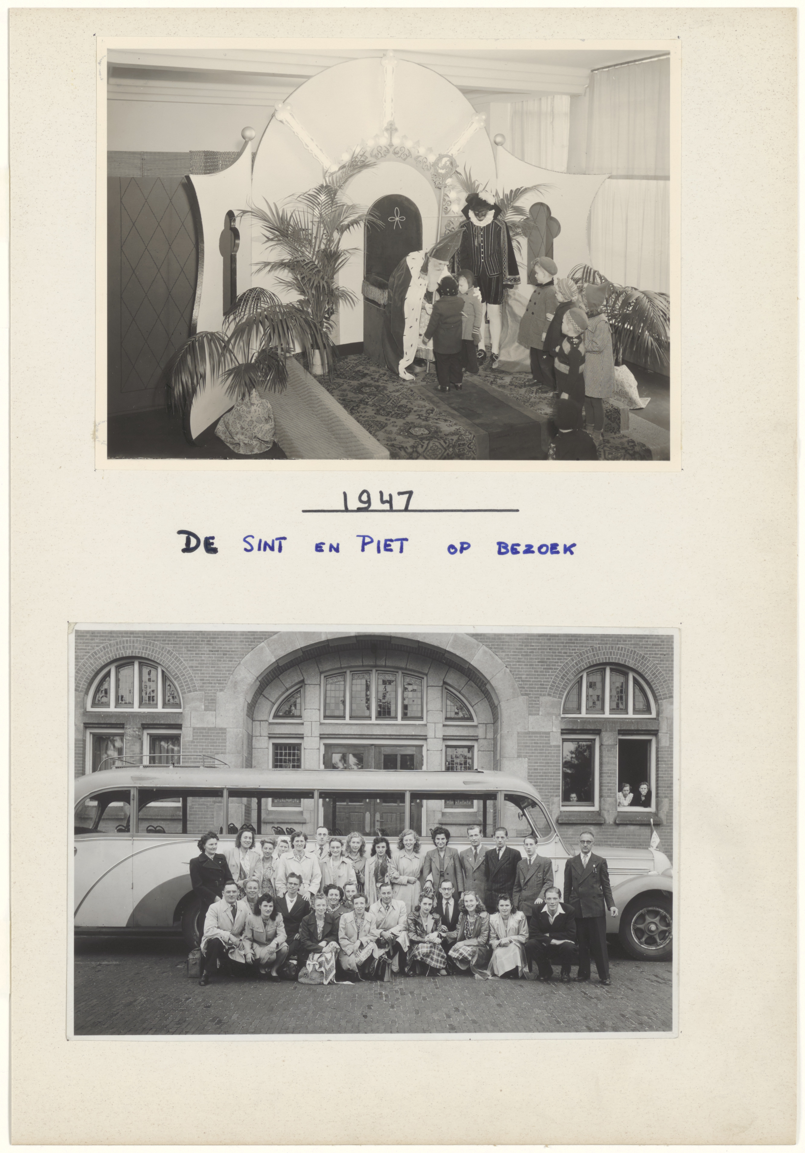 - Foto van het Sinterklaasfeest en van het personeel van de Vroom & Dreesmann uit 1947.