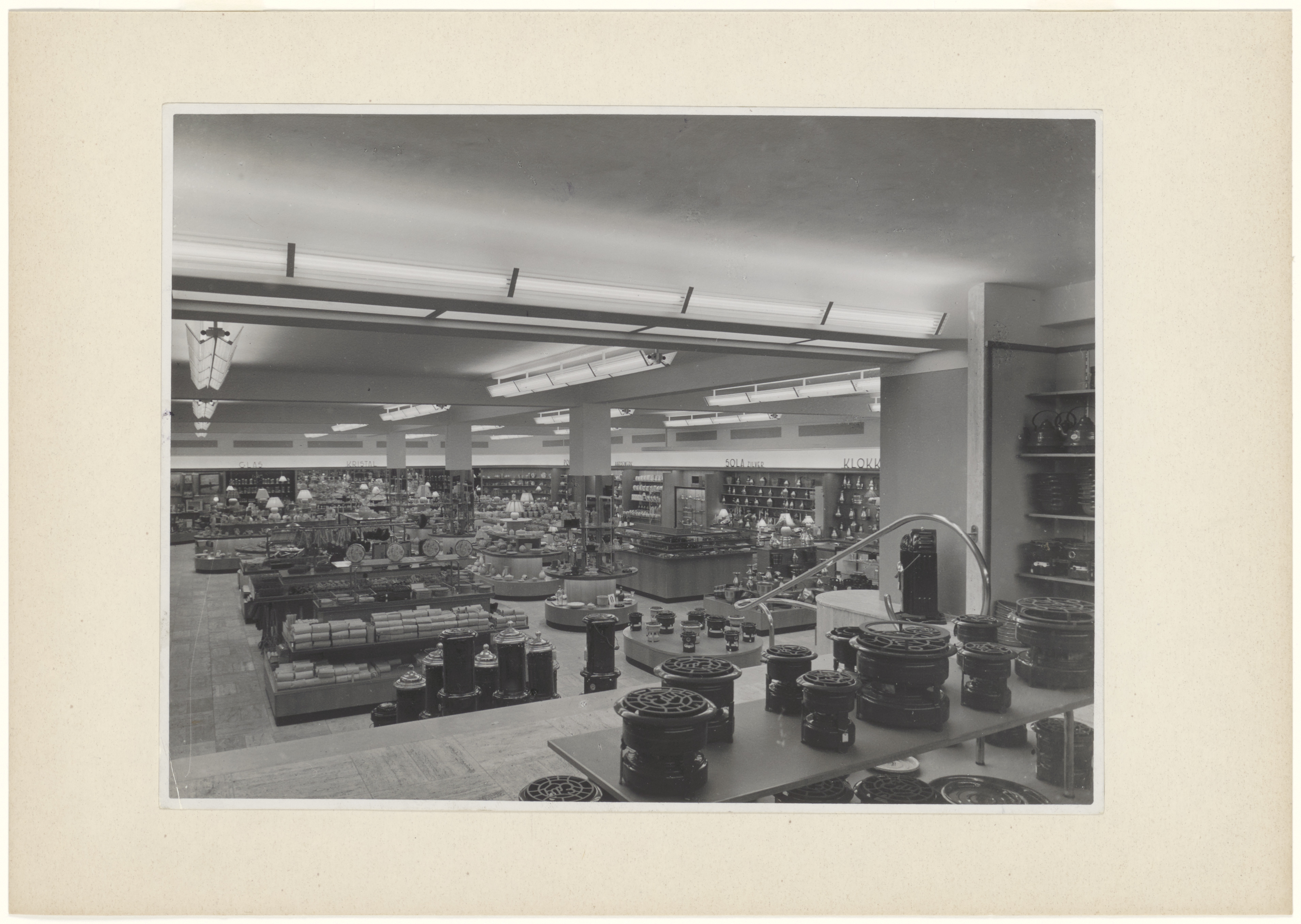 - Interieur, aardewerk en glaswerkafdeling van de Vroom en Dreesmann.