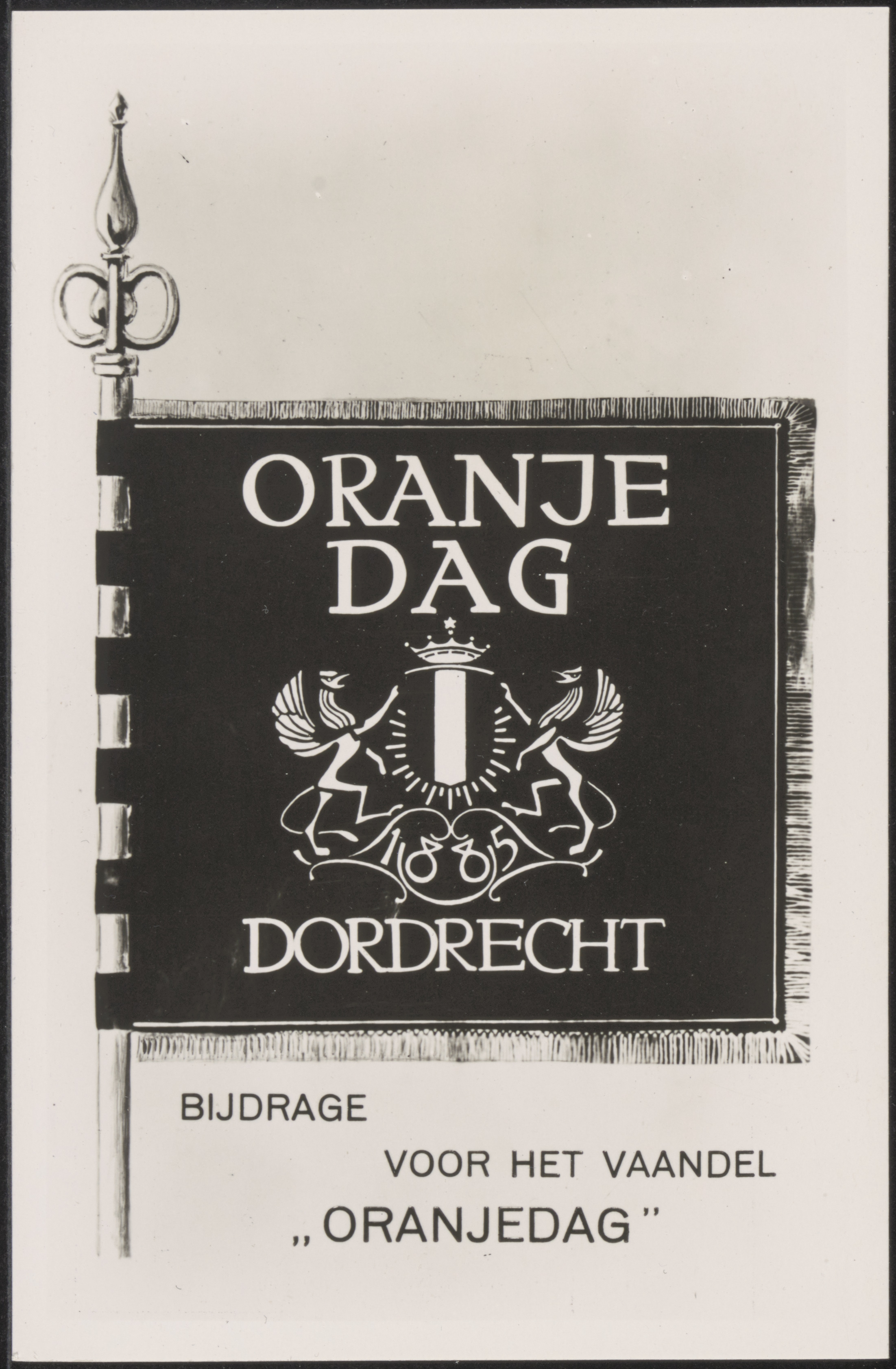 - Vaandel van de in 1885 opgerichte Vereniging Oranjedag in Dordrecht toen prinses Wilhelmina op 31 augustus haar 5e verjaardag vierde.