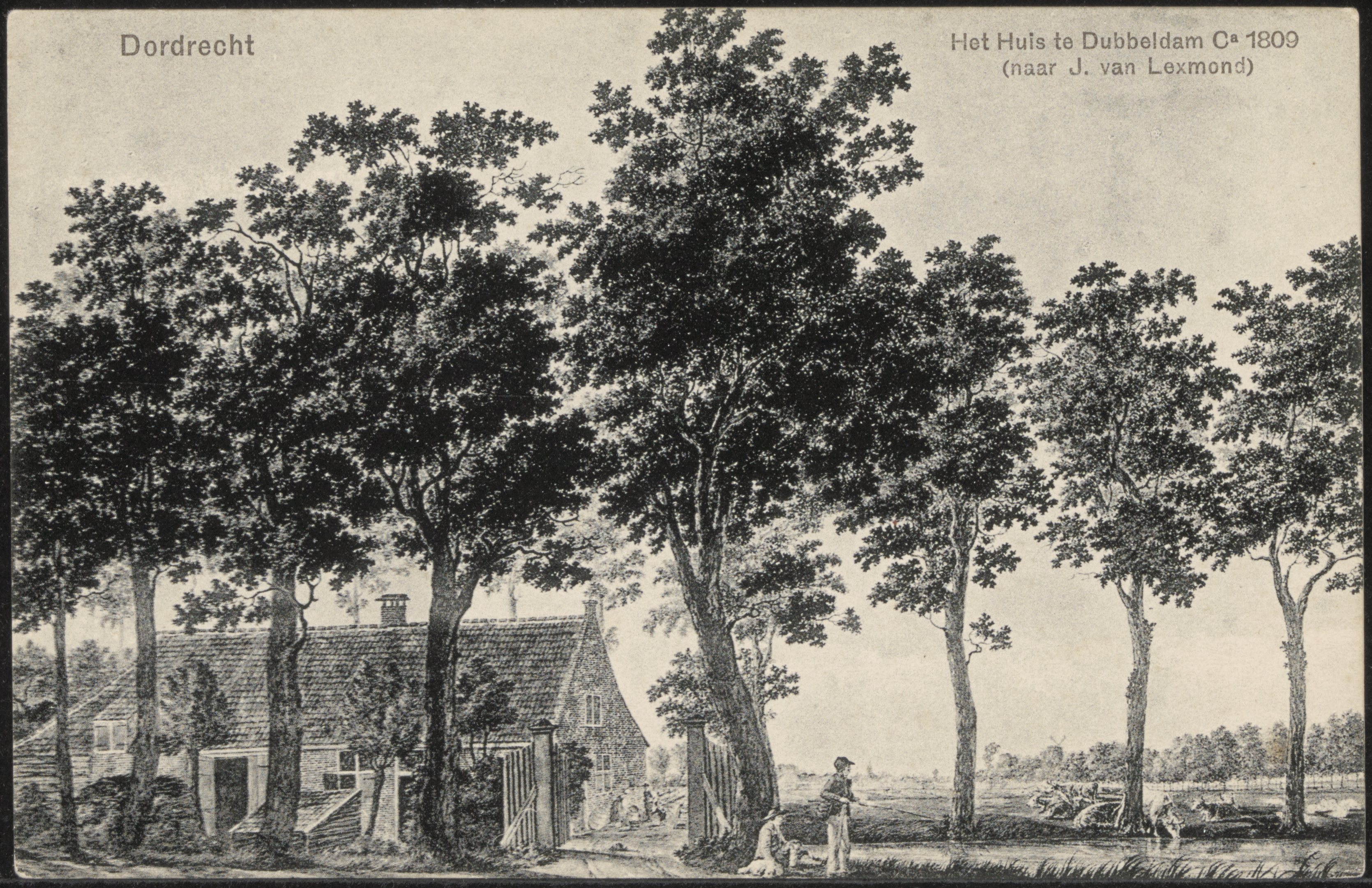 - Tekening door J.van Lexmond van het Huis te Dubbeldam nabij de Markettenweg en Boonepad.