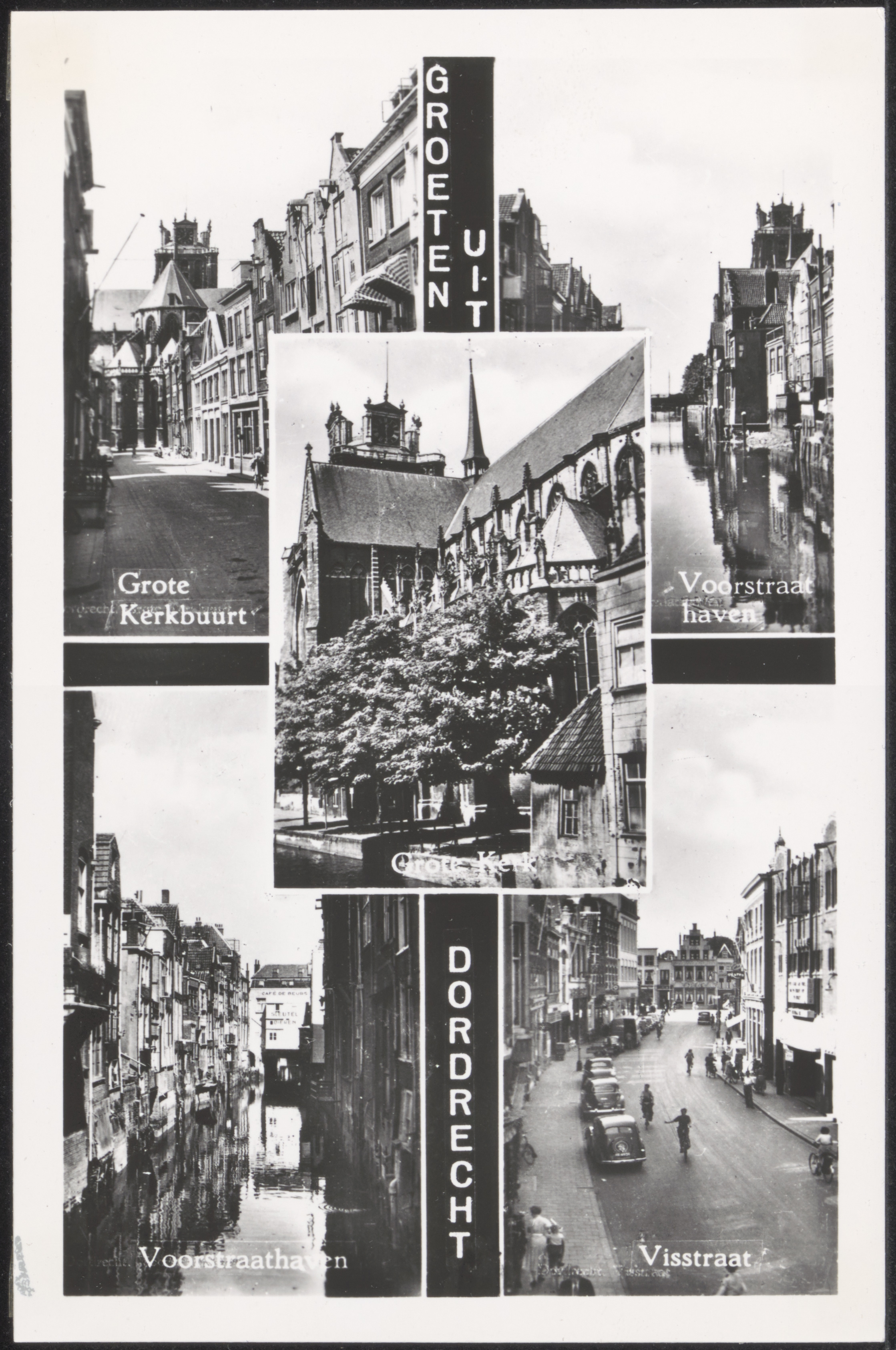 LB: Grote Kerksbuurt. M: Grote Kerk. RB: Voorstraatshaven. LO: Voorstraatshaven Visbrug. RO: Visstraat.